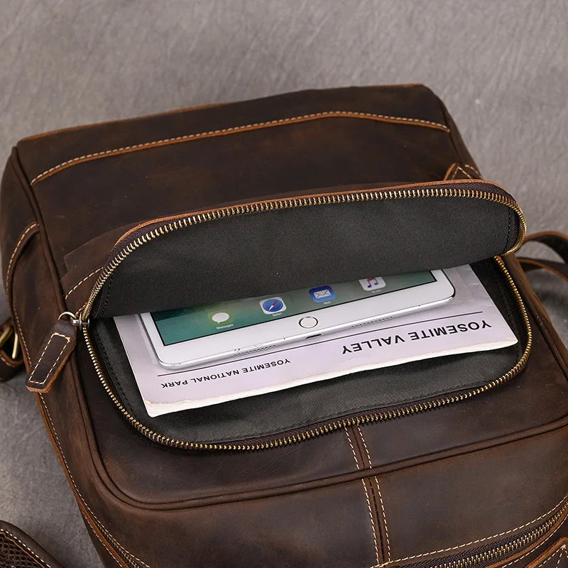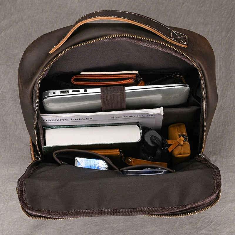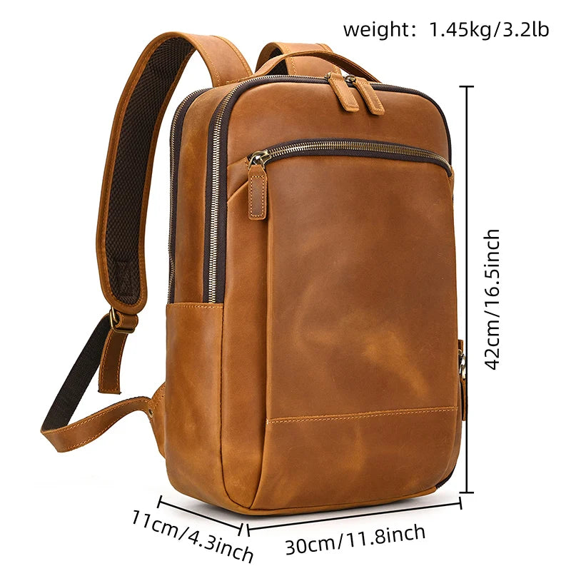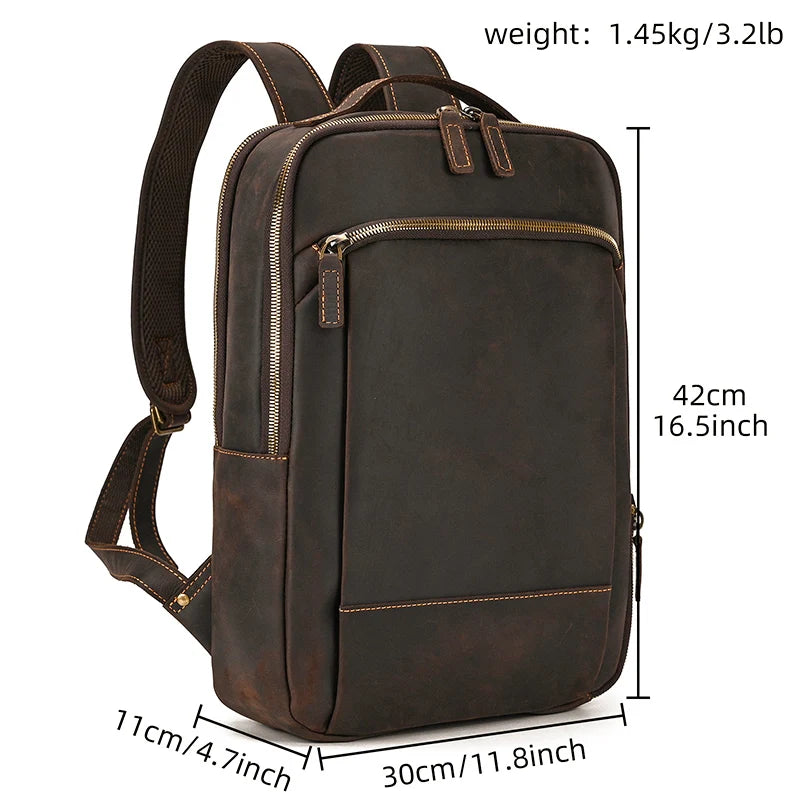 • Durable Genuine Leather: Made from high-quality Crazy Horse leather, this backpack offers both longevity and a vintage appeal.