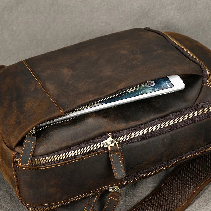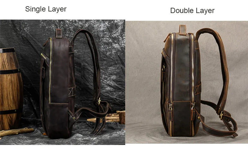 Discover the ultimate blend of style and functionality with the Men's Retro Crazy Horse Leather Backpack for 15.6 Inch Laptop. Crafted from premium genuine cow leather, this backpack is perfect for the modern man who values both aesthetics and practicality.
