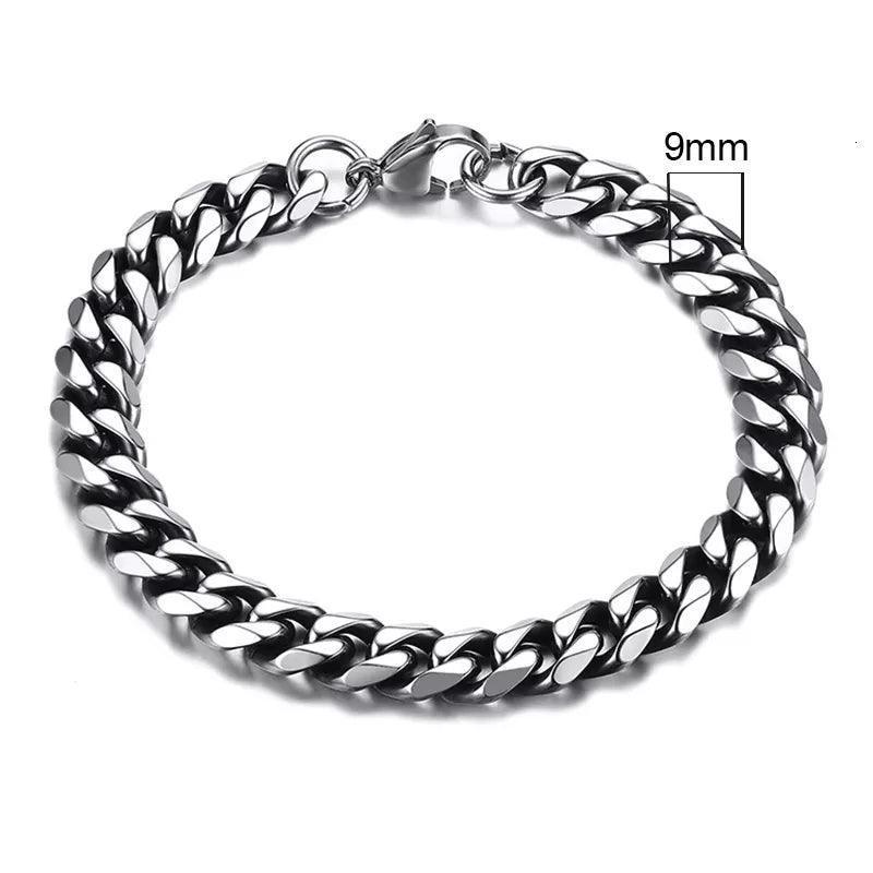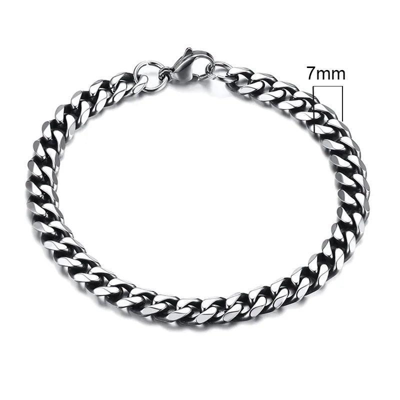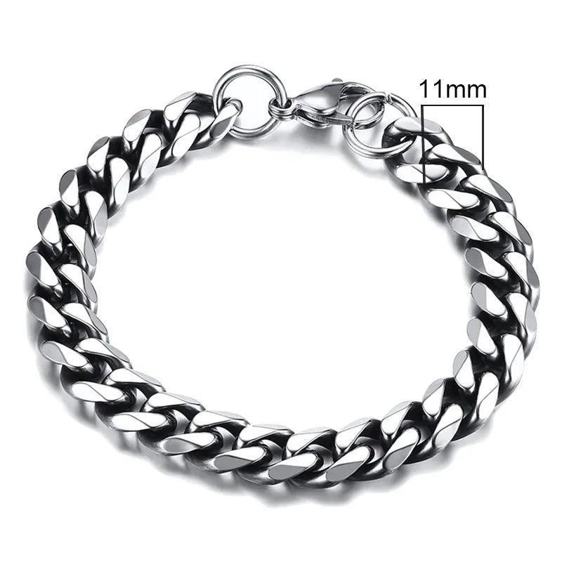 Chunky Stainless Steel Curb Chain Bracelet For Men blends bold punk edge with everyday durability, crafted from premium stainless steel for a brilliant, corrosion-resistant shine; with width options 3mm–11mm, lengths 18cm–23cm, and colors including Vintage, Silver, Black plus Gold plating, it's ready to elevate any look.