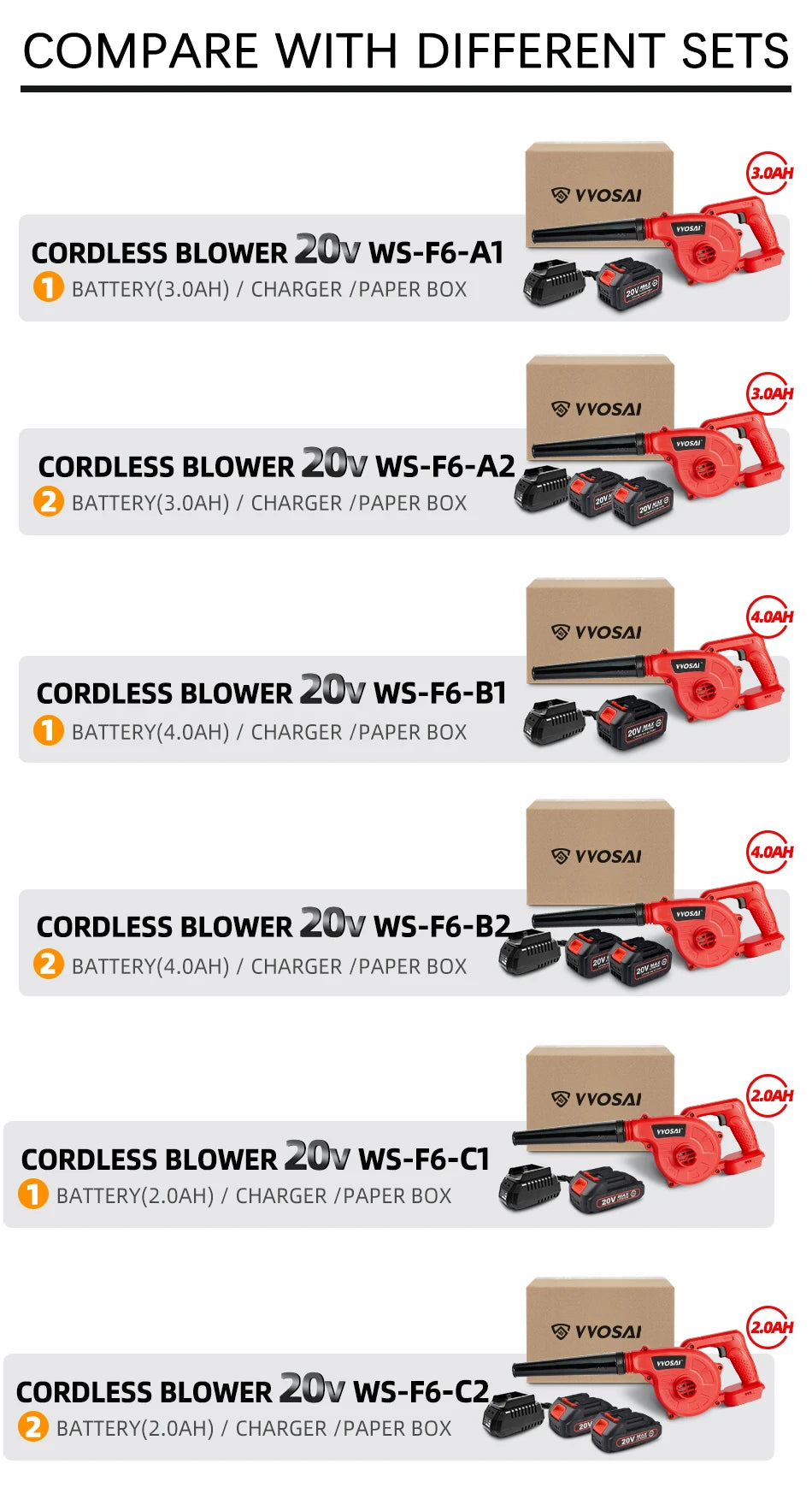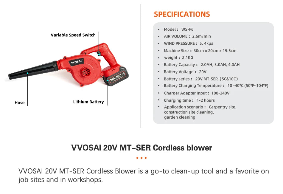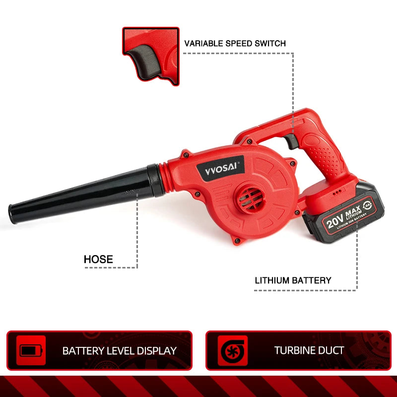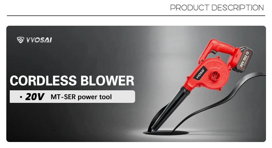 Whether you're a gardening enthusiast or just need a practical solution for household tasks, the VVOSAI 20V Garden Electric Blower Cordless Power Tool Easy Use is your go-to power tool. Say goodbye to the hassle of cleaning and embrace the ease of cordless operation!