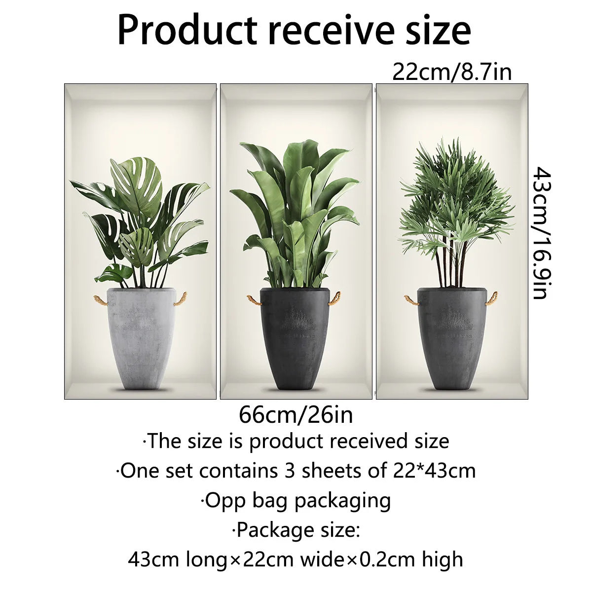 Elevate your home decor with our Wall Art Stickers Simulate 3D Potted Green Plants Decor. These stunning 3D wall decals invite nature into your home, adding a refreshing touch to any room.