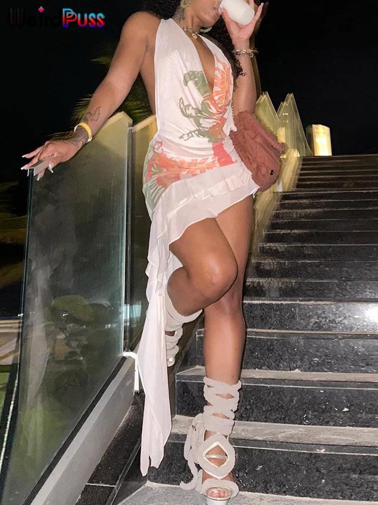 Experience comfort, style, and confidence! The Weird Puss Sexy Halter Dress Chic Summer Clubwear Statement features unique ruffles, high elasticity, and a flattering cut, ensuring you’ll be the center of attention this summer.