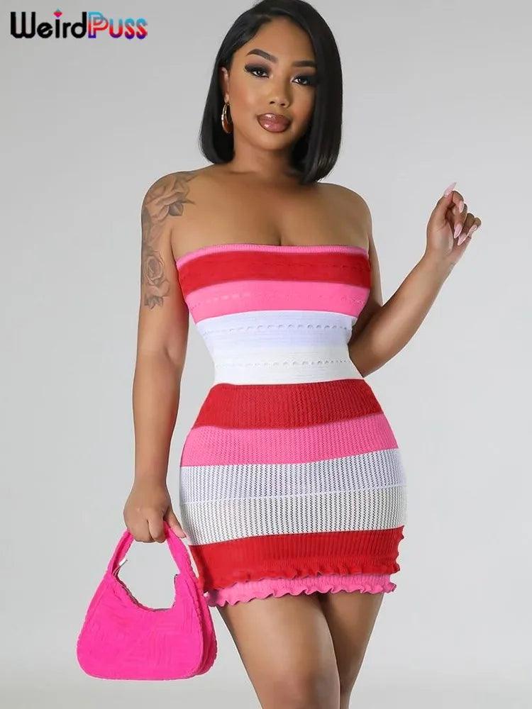 Elevate your fashion game and enhance your summer adventures. Order now and be the center of attention with our Elegant Striped Ruffles Chic Summer Clubwear Dress Online!