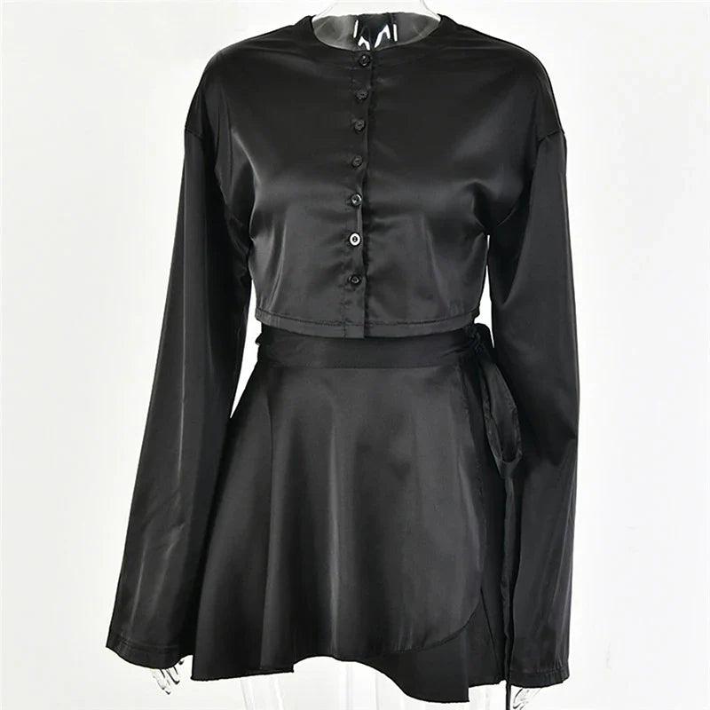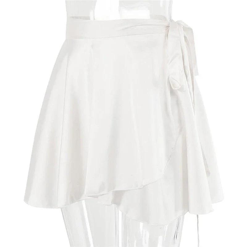 White Satin Elegant Two-Piece Set Chic Comfort Fit Skirt Top