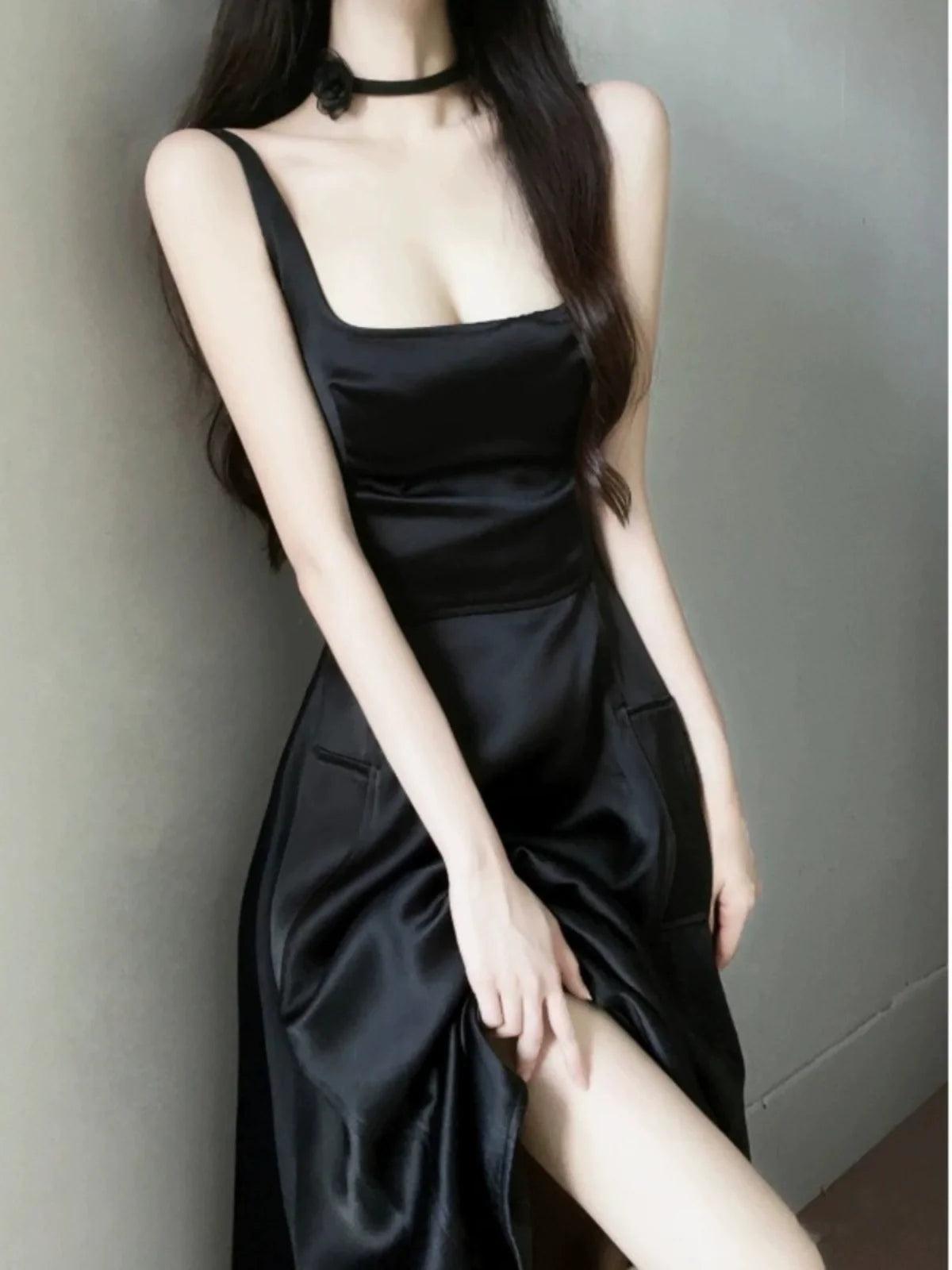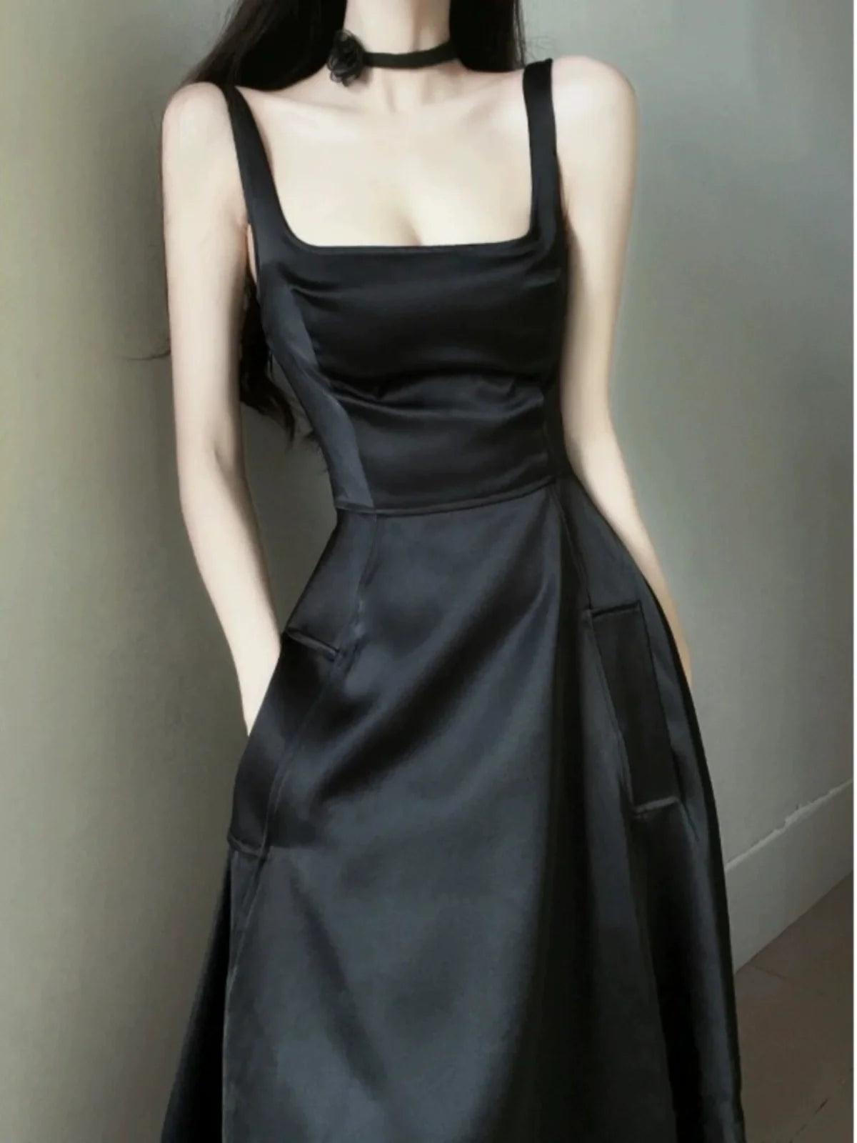 Indulge in the enchanting charm of the French Satin Sling Gown: Hepburn-Inspired Elegance Dress. This exquisite dress embodies timeless class and sophistication, making it a must-have for any fashion-forward individual.