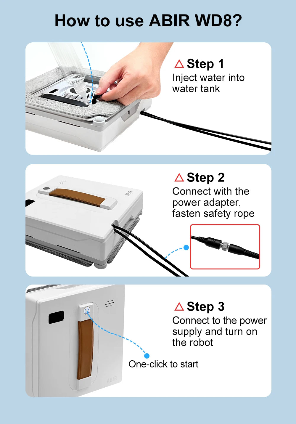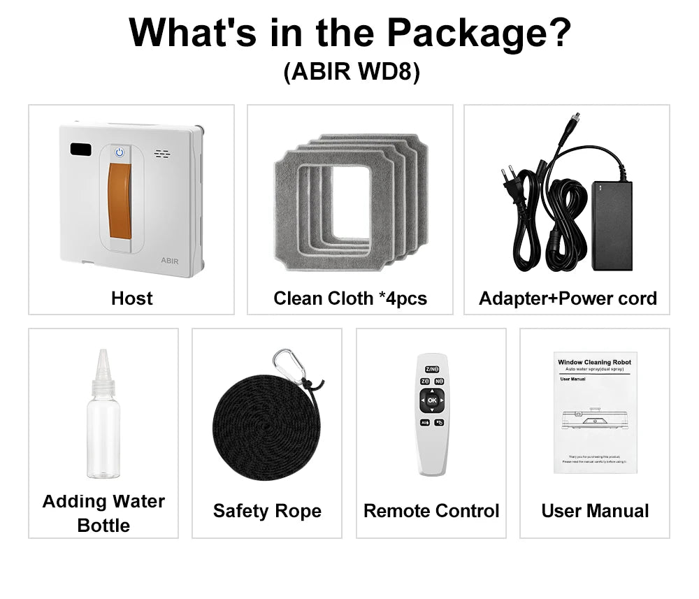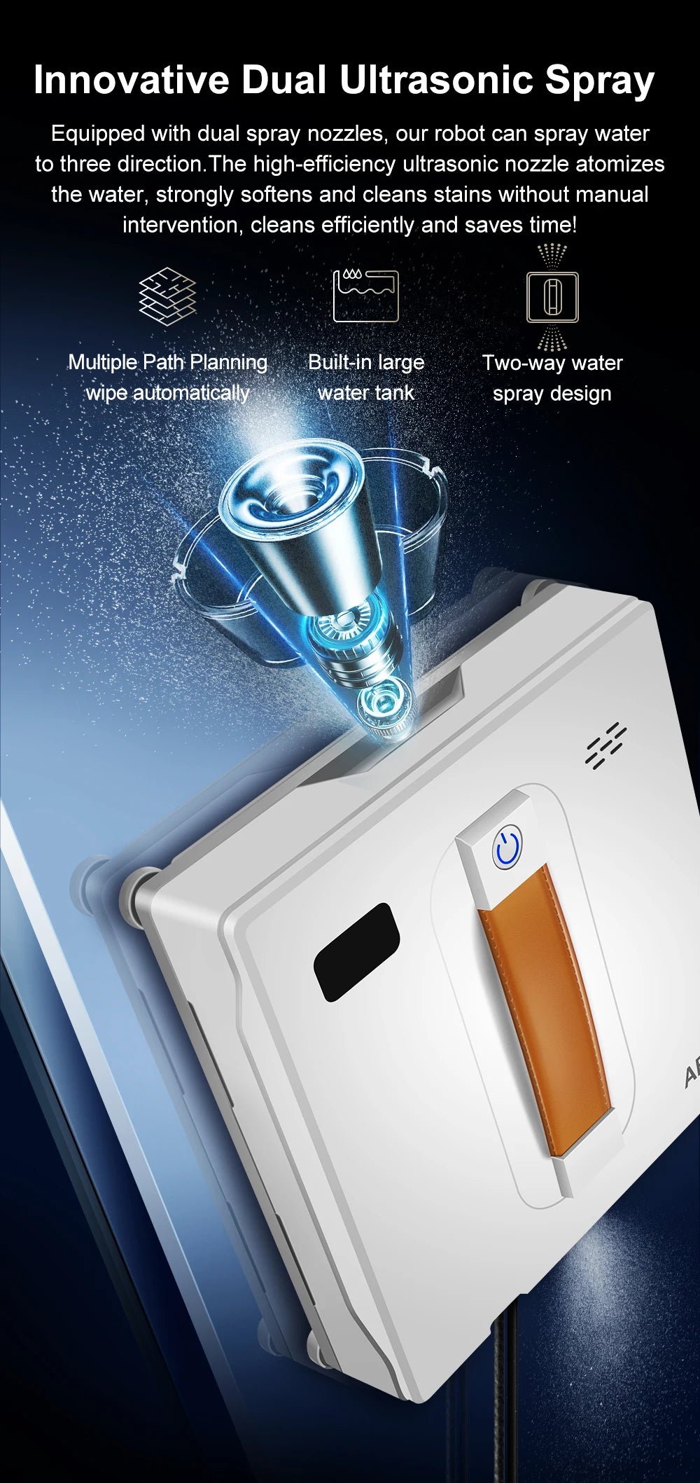 Transform your cleaning routine with the innovative 1. Window Vacuum Robot Cleaner ABIR WD8 with Dual Ultrasonic Spray. This advanced cleaning solution combines cutting-edge technology with intelligent design, ensuring your glass surfaces sparkle effortlessly. Say goodbye to manual labor and hello to a cleaner, smarter home!