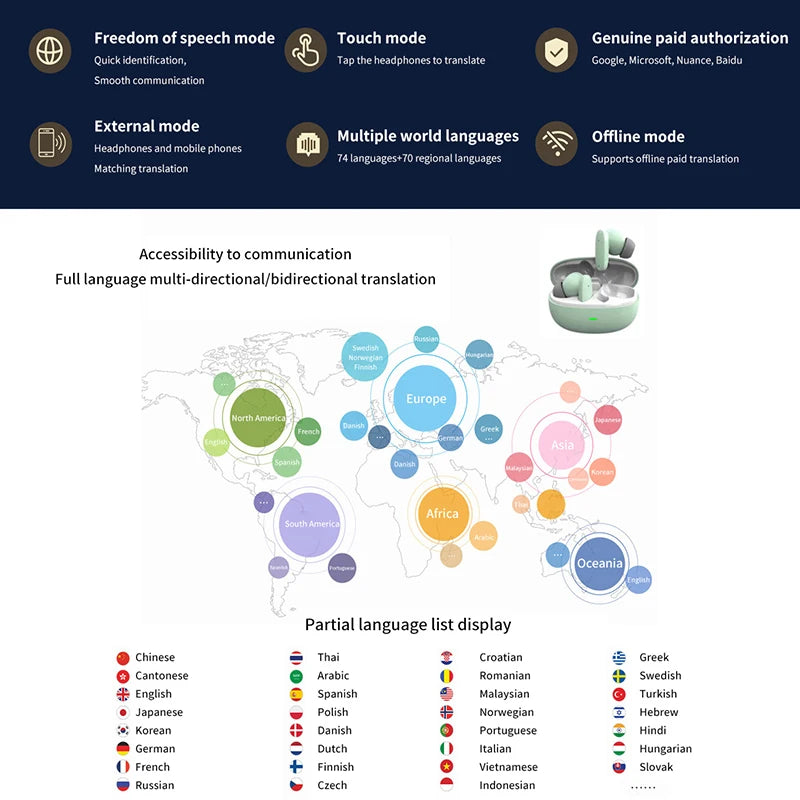 Discover how these multilingual translation earphones can enhance your travel experience by providing communication capabilities in multiple languages. Perfect for business travelers and language enthusiasts, these earbuds redefine convenience.