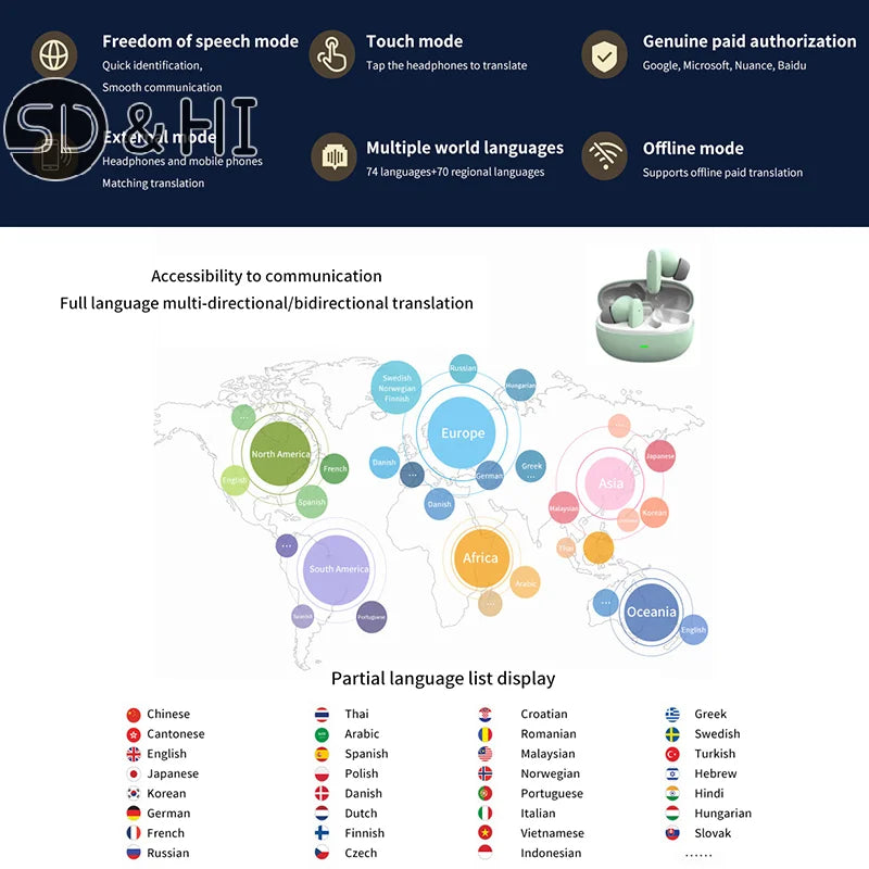• Exceptional Sound Quality: Immerse yourself in rich audio, enhancing both music enjoyment and translation clarity.