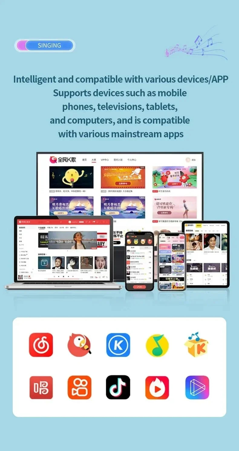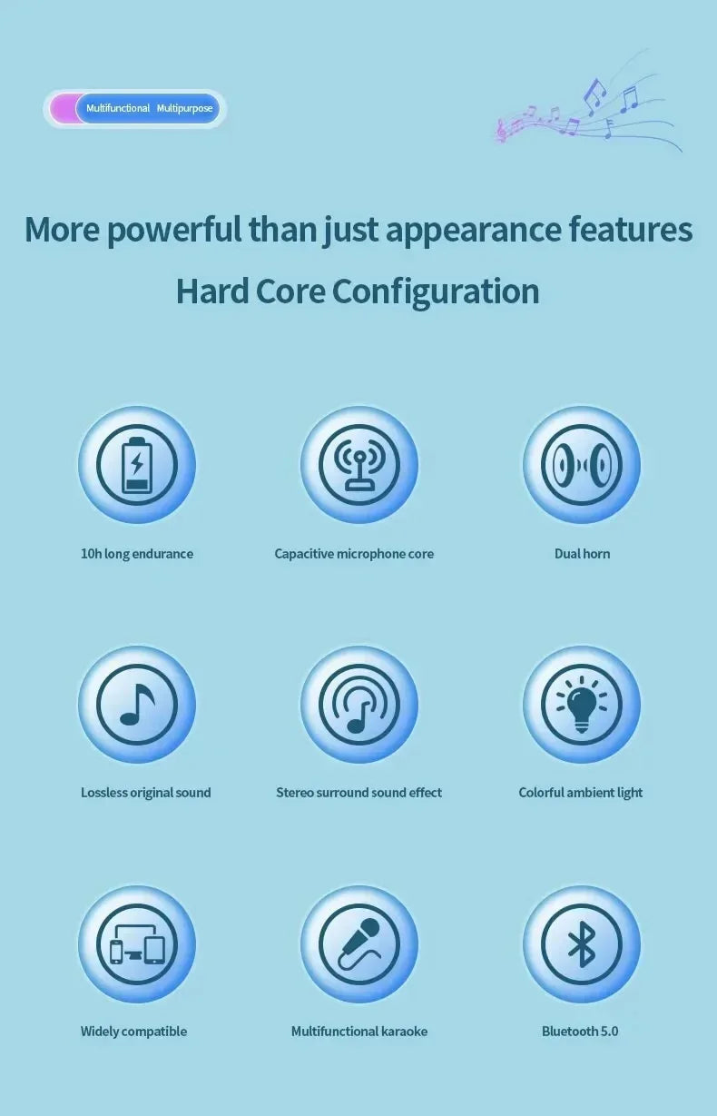 • Multiple Play Modes: Enjoy versatility with support for Bluetooth, TF card, and headphone monitoring, providing endless options for your karaoke parties.