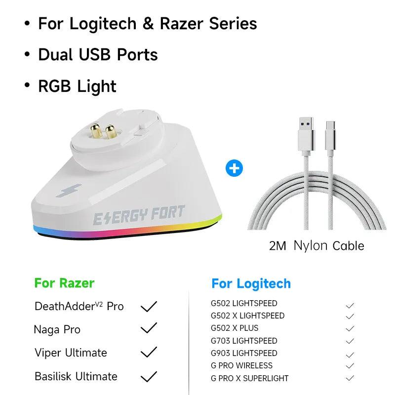 Elevate your gaming experience with the Wireless Gaming Mouse Charger Stand RGB Fast Charging Dock. This innovative charging solution is designed specifically for seamless charging of your Logitech and Razer gaming mice, ensuring you are always ready for intense gaming sessions.