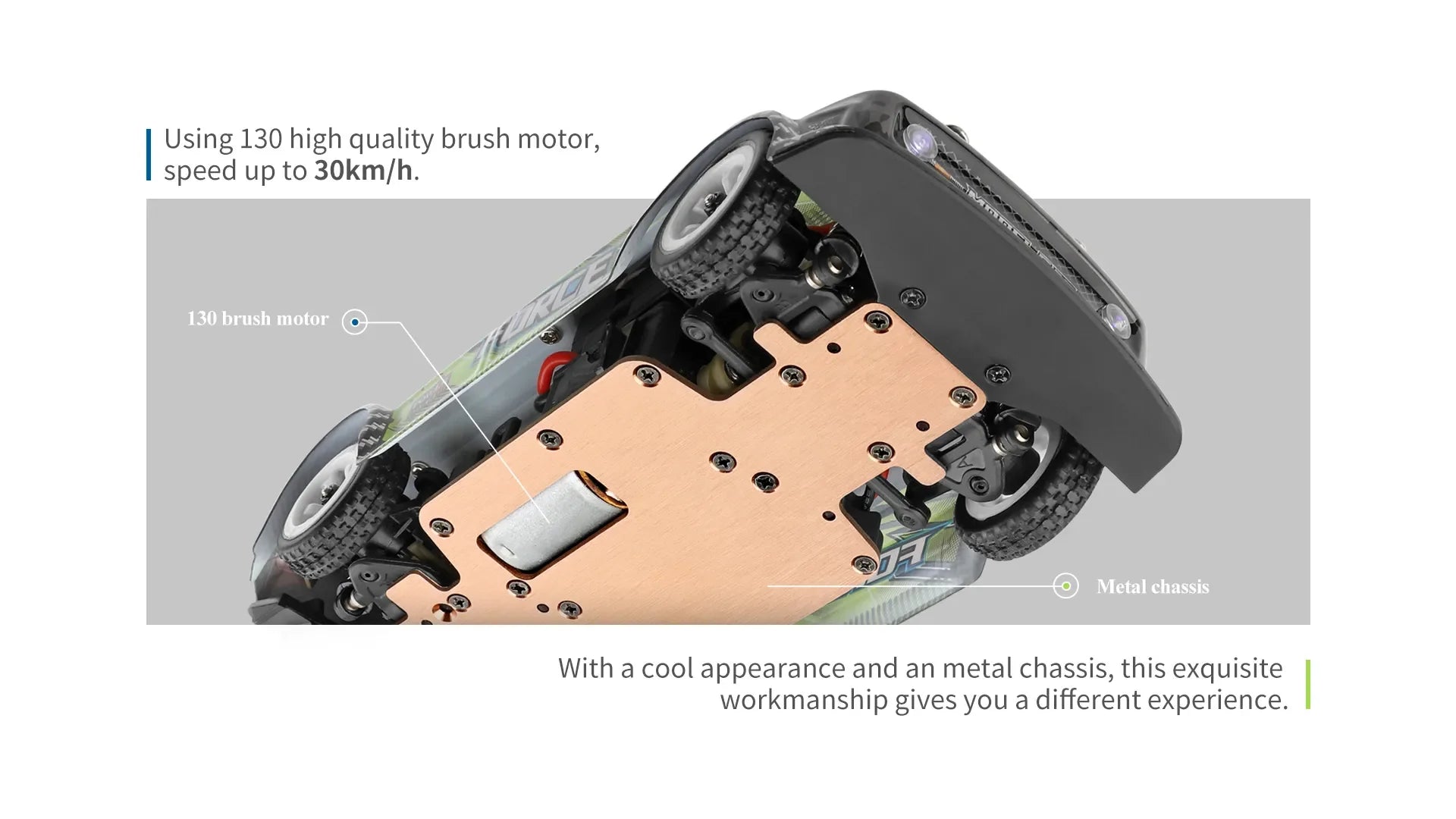 • High-Speed Performance: Powered by a robust 130 brushed motor, enjoy exhilarating speeds up to 30KM/H.