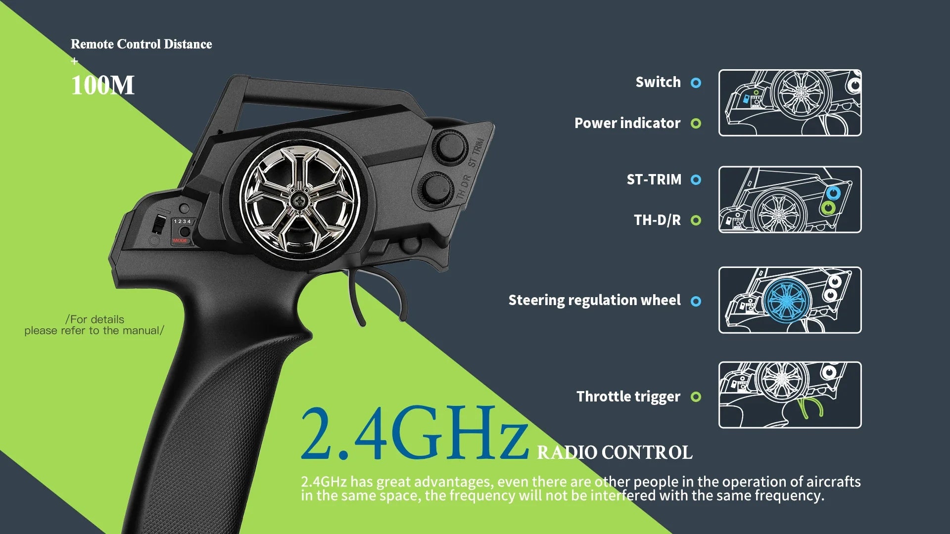 • Advanced Control System: Featuring a 2.4GHz control system with a remote range over 100 meters for seamless operation.