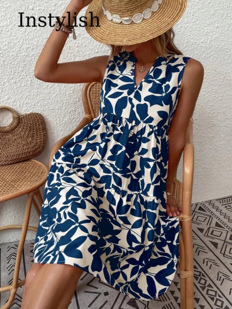 Boho Print V Neck Tank Dress Chic Summer Style Statement