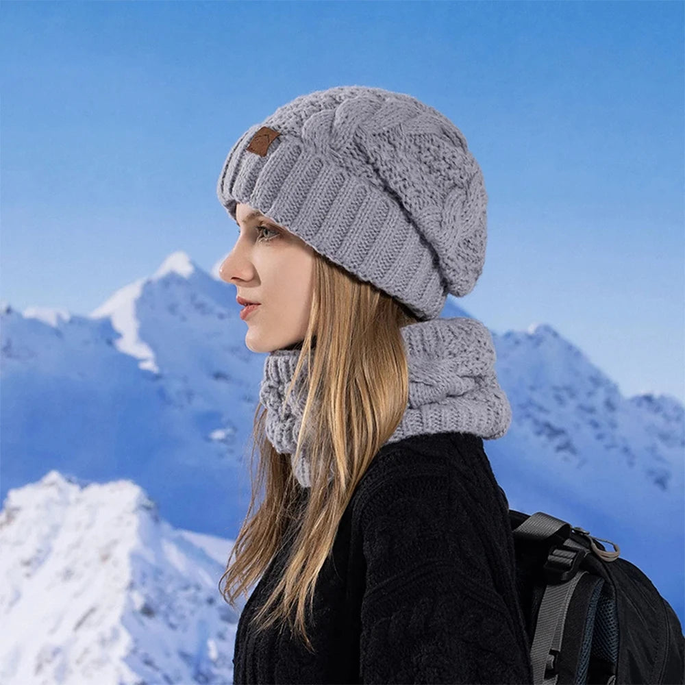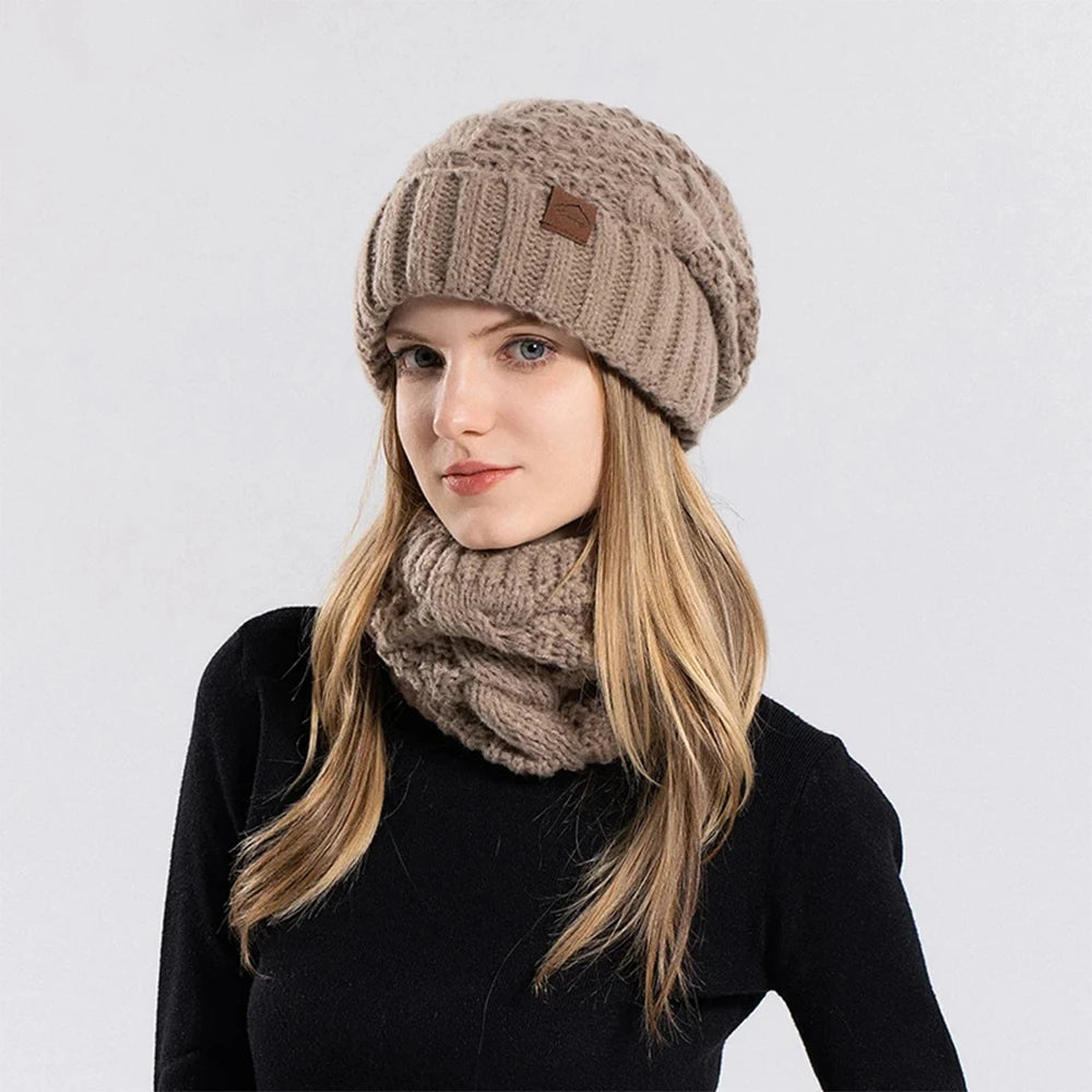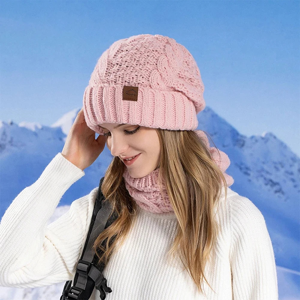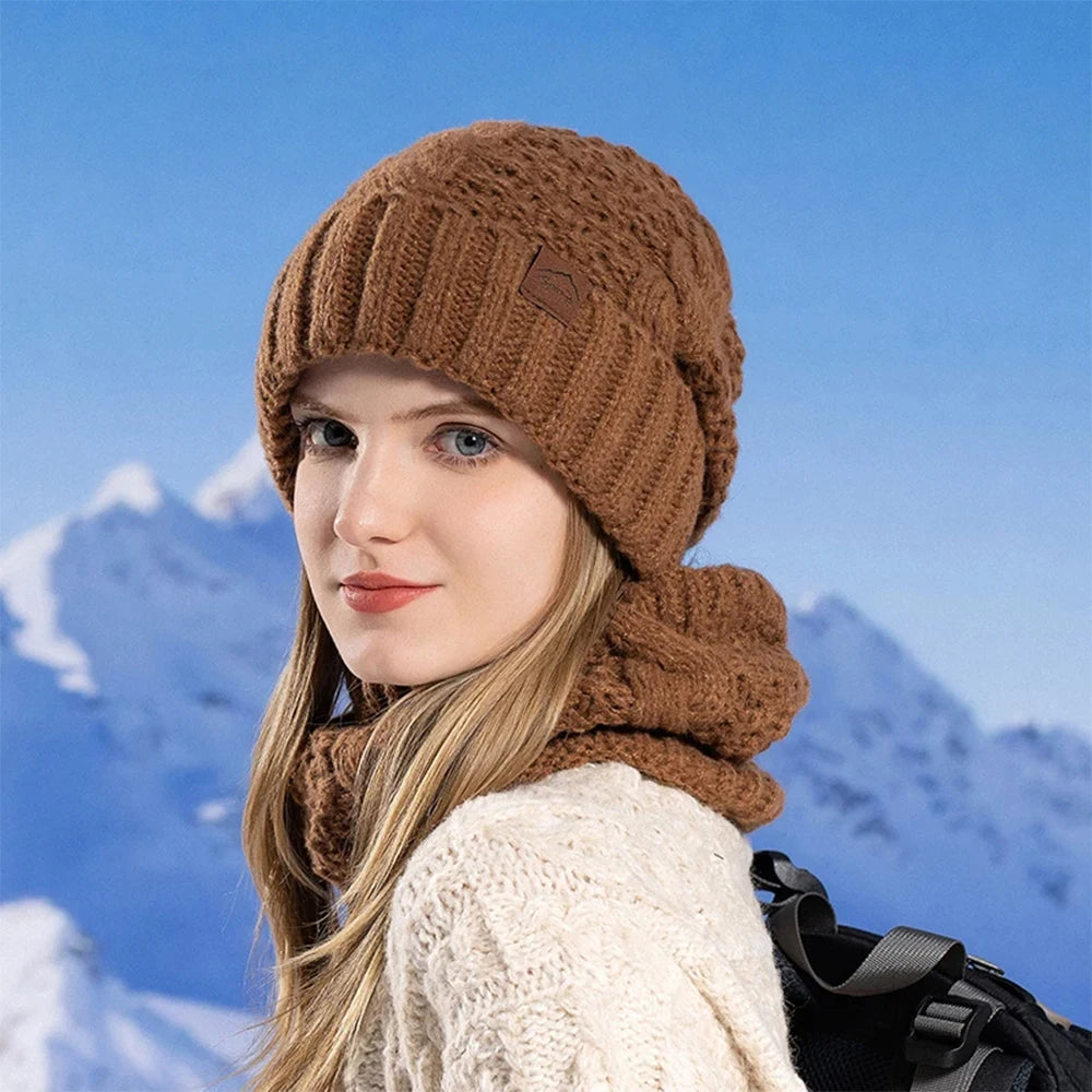Women Knitted Hat Scarf Set for Outdoor Cycling Warm Protection