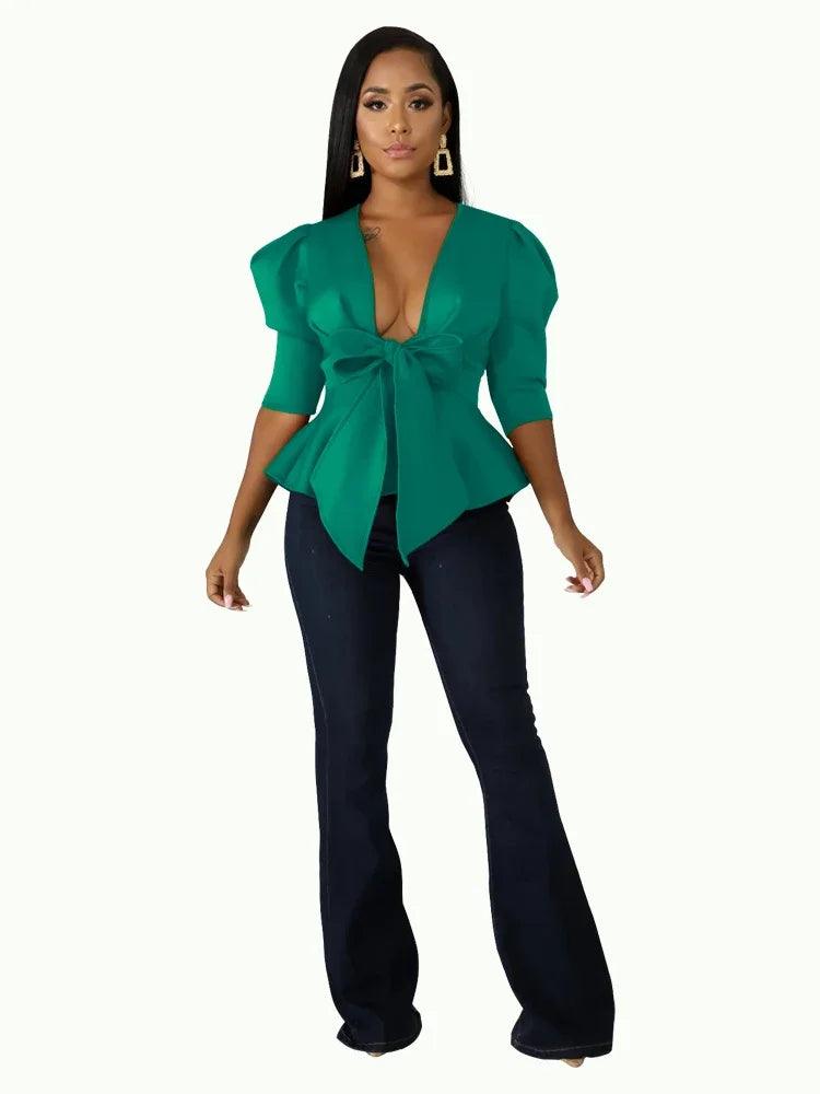 Elevate your style game with our Chic Bowtie Peplum Blouse Elegant Clubwear Party Chic. This stunning blouse is perfect for the confident, fashion-forward woman looking to make a statement at any event.