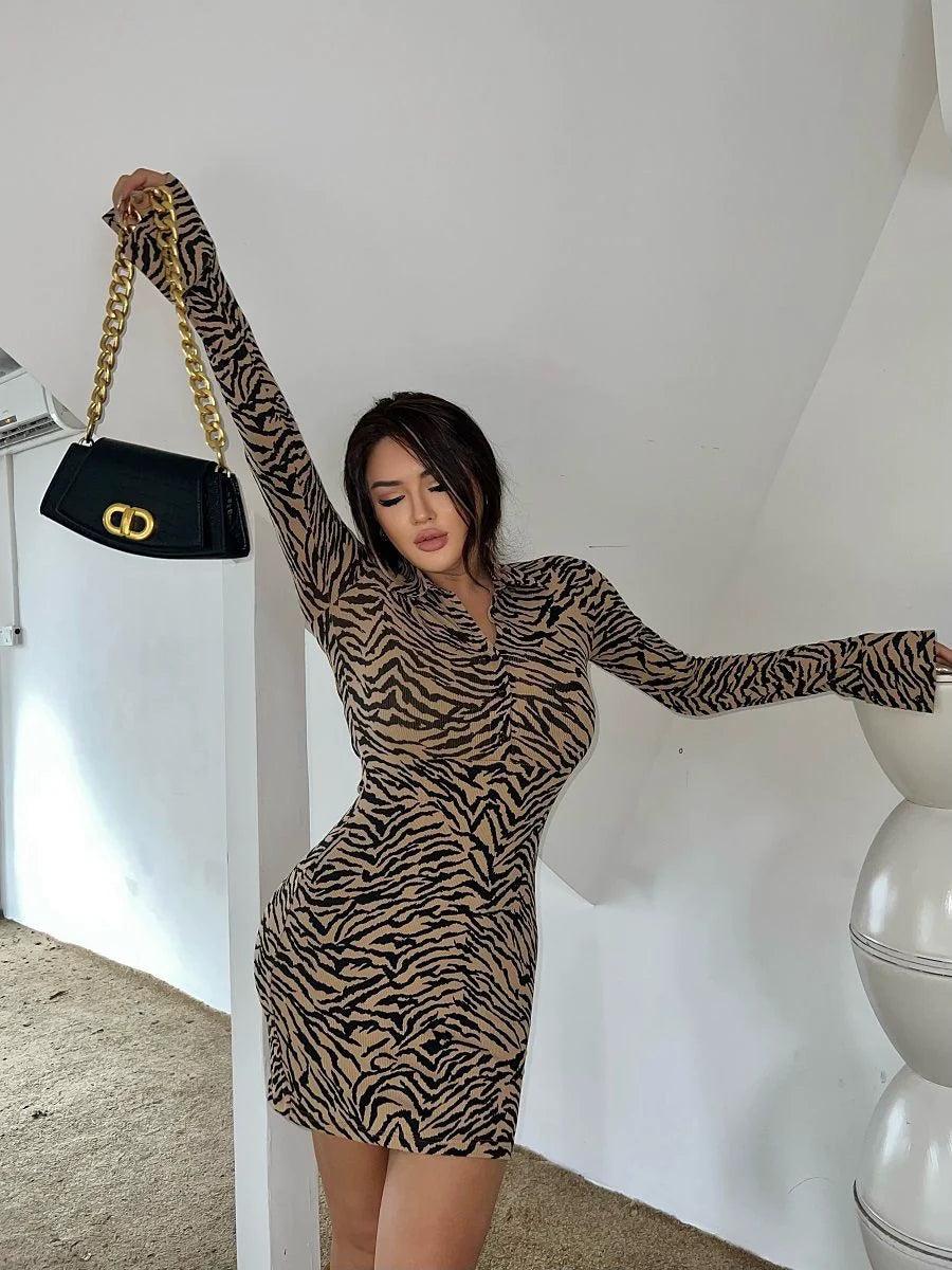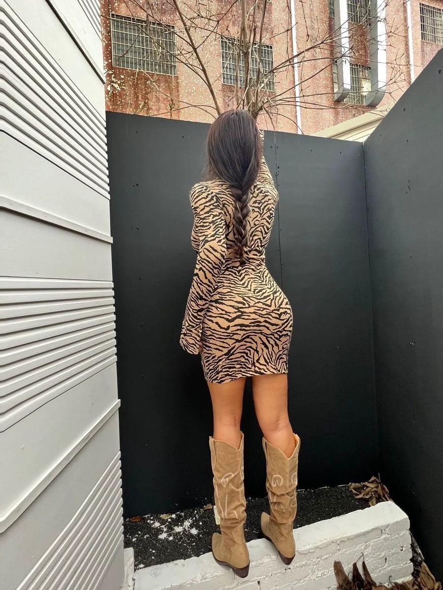 Transform your wardrobe with this must-have dress that captures attention and turns heads wherever you go. Elevate your fashion with the Tiger Stripe Slim Fit Dress: Stylish Versatile Fashion today!