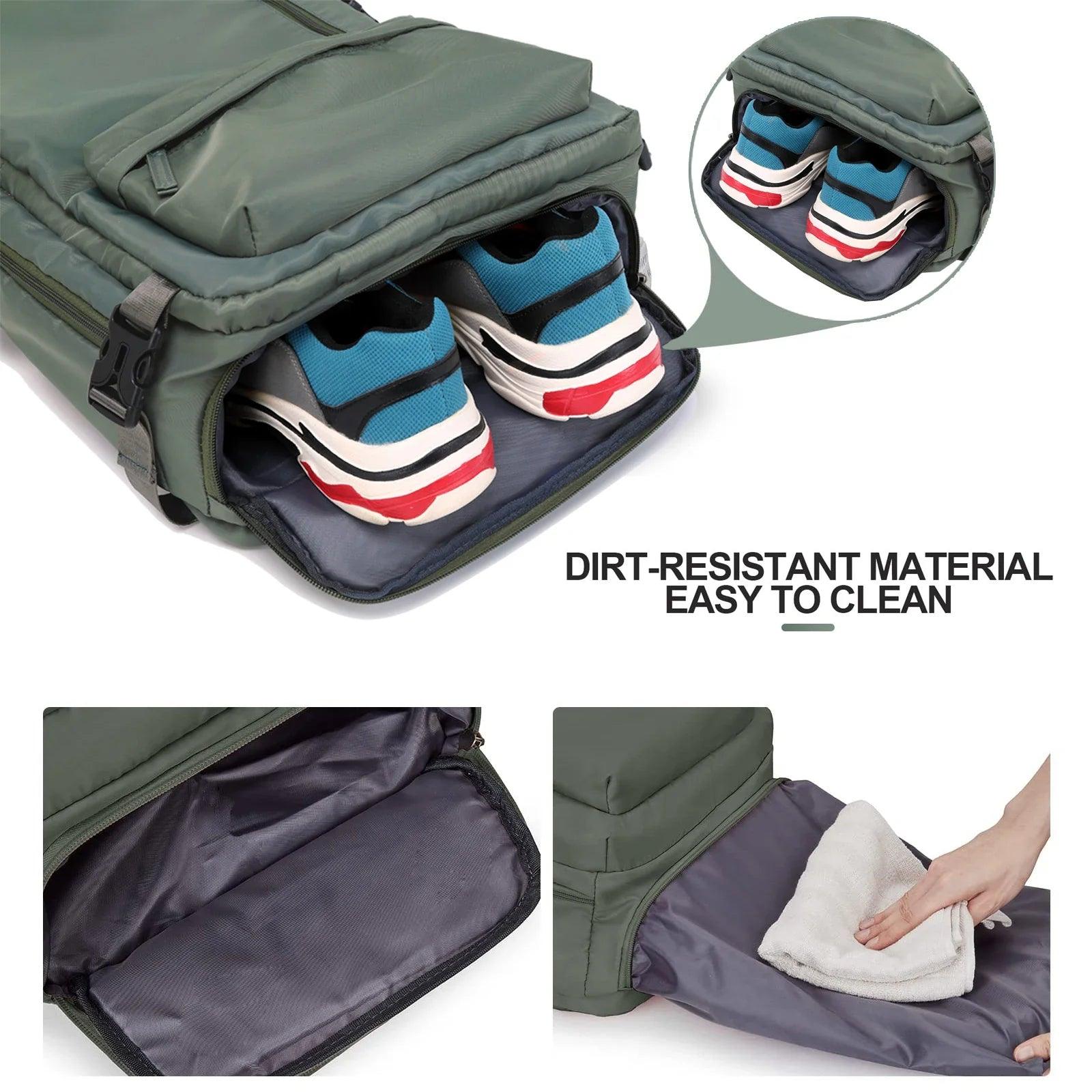 • Shoe Compartment: Keep your footwear separate and organized, ensuring cleanliness wherever you go.