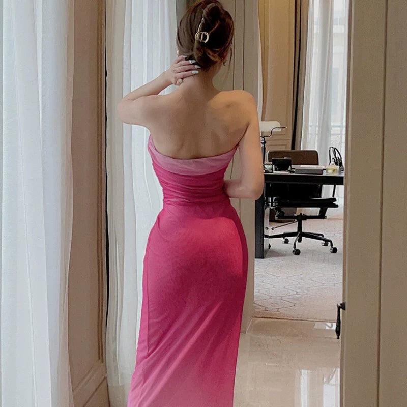 Off-Shoulder Gradient Bodycon Dress Summer Chic Elegance