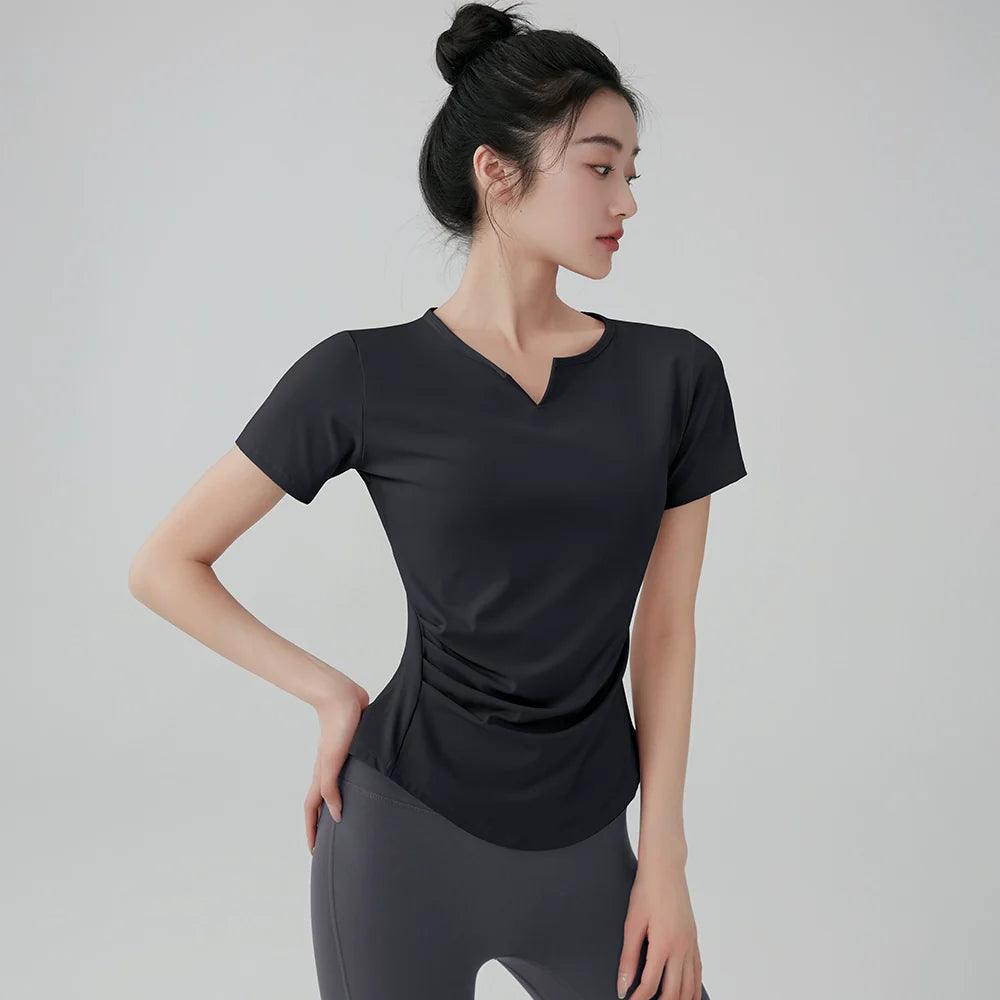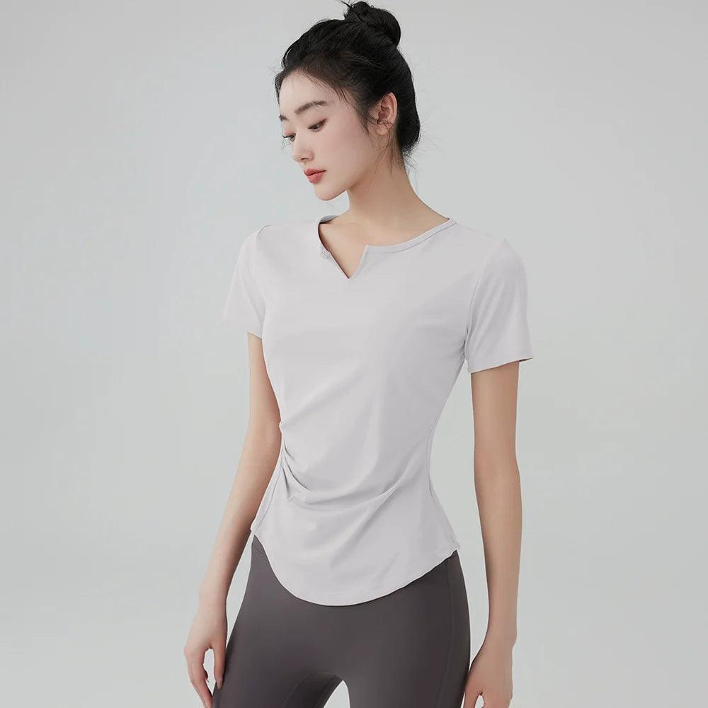 • Lightweight V-neck: Enhances breathability and adds a chic element to your fitness wardrobe.