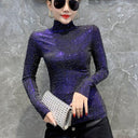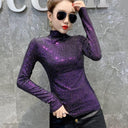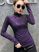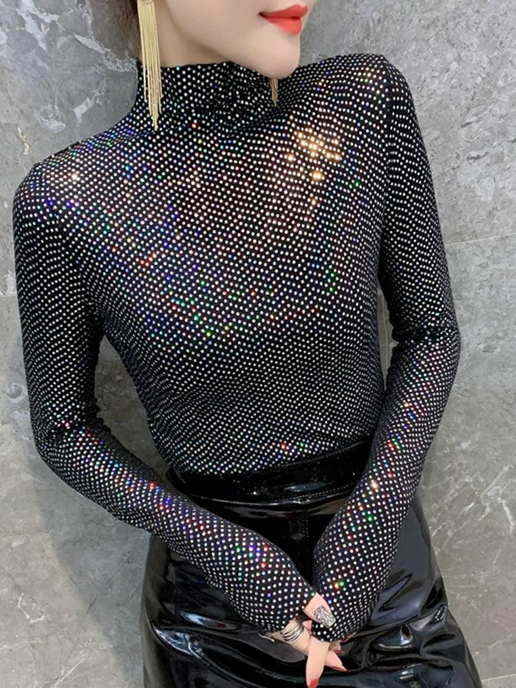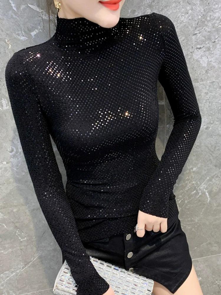 European Chic Sequin Turtleneck Shirt Stylish Autumn Fashion