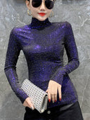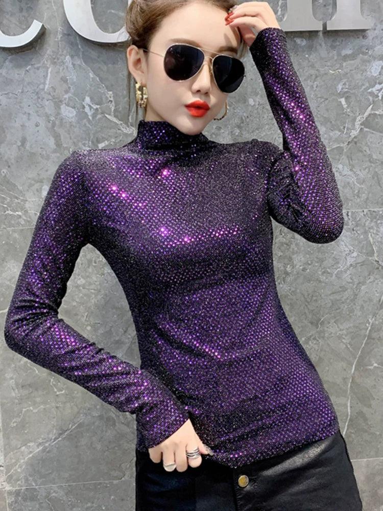 Transform your autumn wardrobe with the European Chic Sequin Turtleneck Shirt Stylish Autumn Fashion. This exquisite piece merges elegance and glamour, making it a must-have for fashion-savvy women who want to stand out.