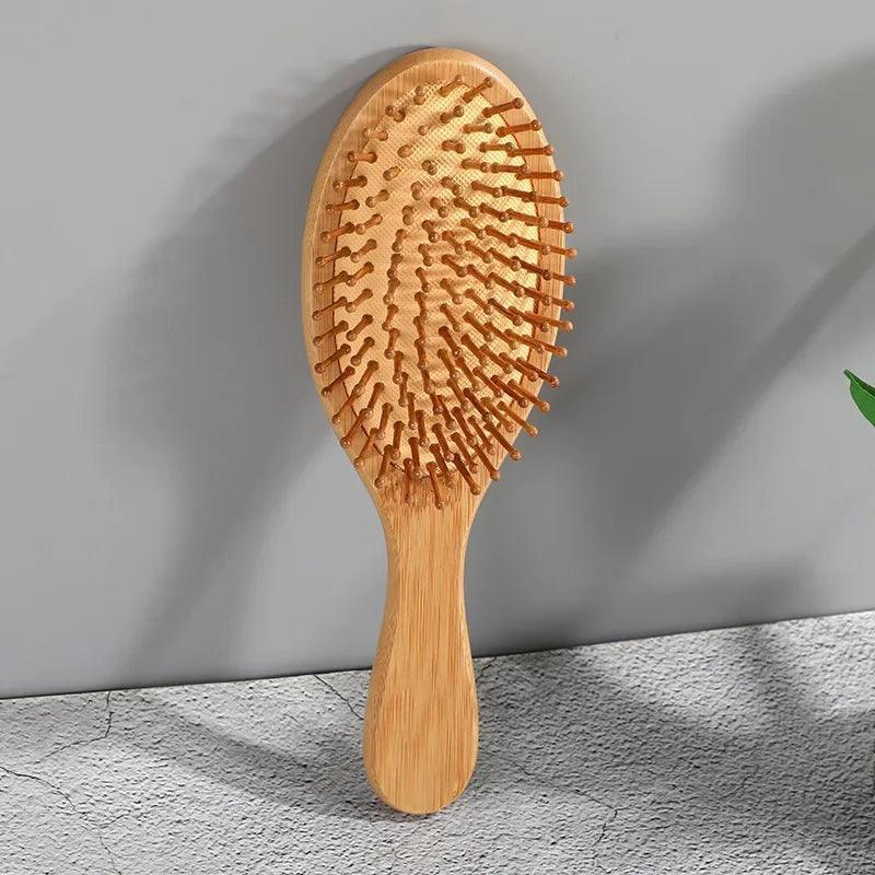 A: This comb combines an air cushion design with professional-grade bristles to glide through hair while delivering a calm scalp massage. The result is improved circulation, reduced breakage, and stronger roots. Its eco-friendly bamboo construction adds sustainable value to daily grooming.