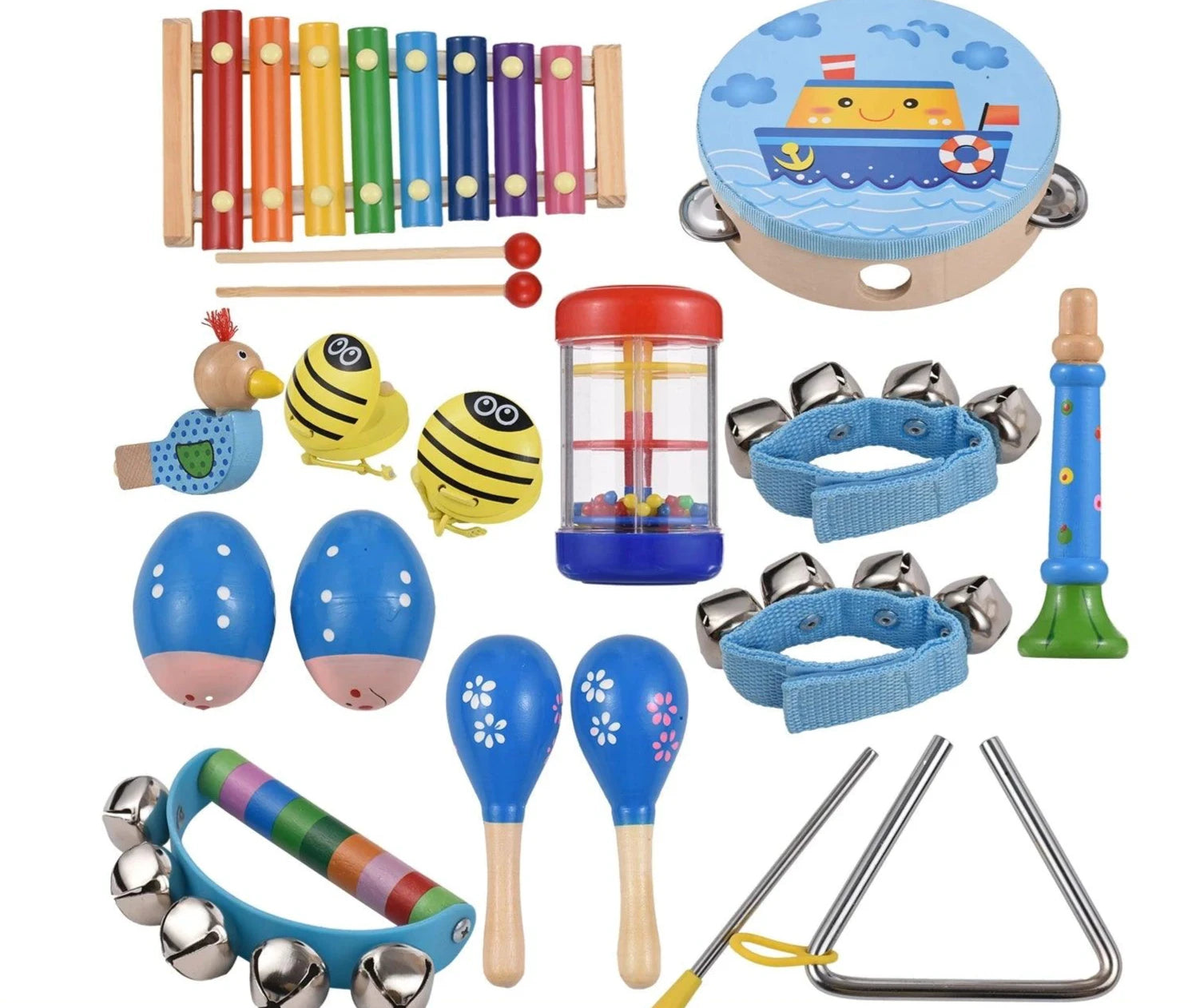 • Comprehensive Instrument Set: Featuring a rich variety of instruments including a xylophone, tambourine, wrist bells, triangle, rain tube, whistle, flute, egg shakers, claves, and maracas, there's an exciting sound waiting to be discovered!