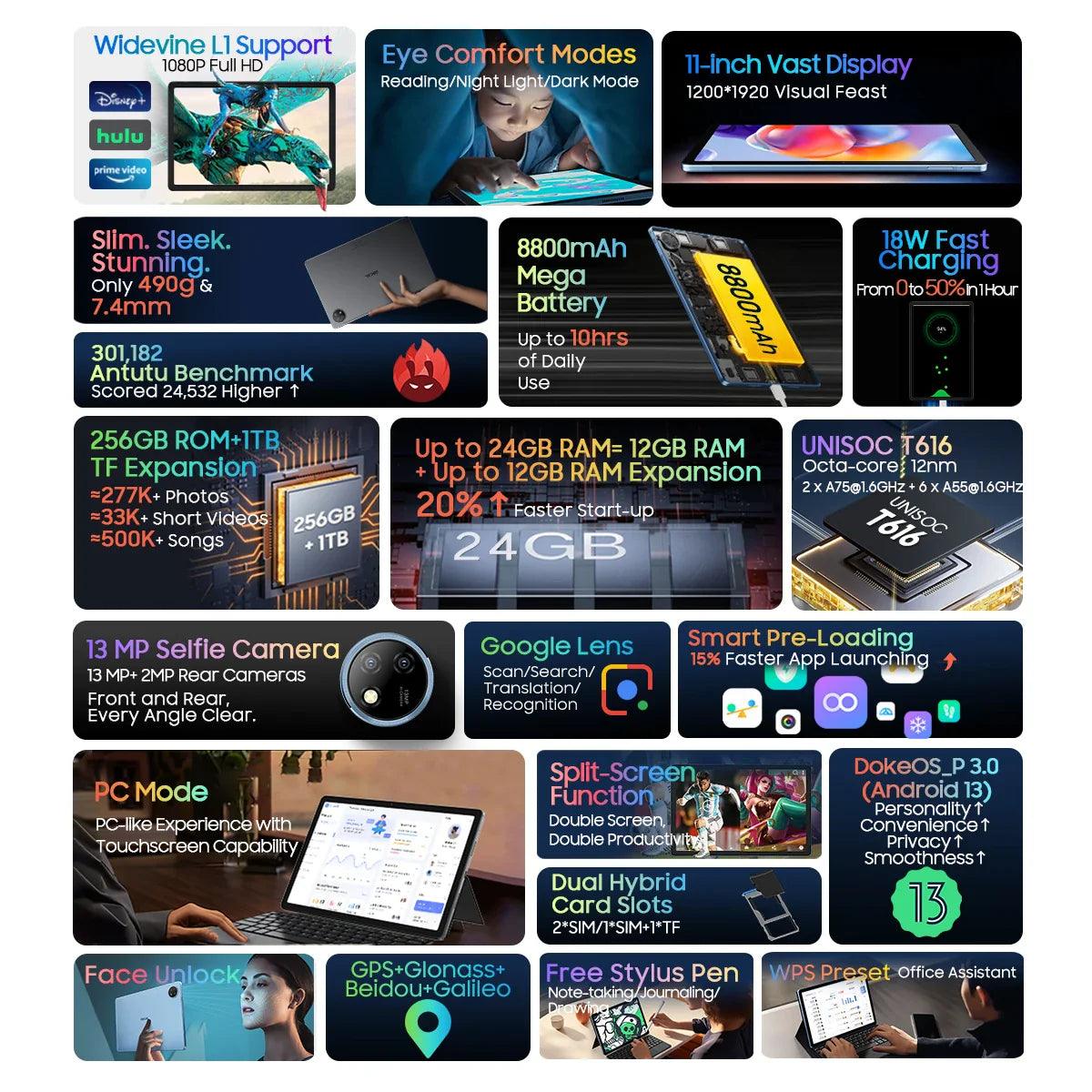 The Oscal Pad 18 Tablet 11 Inch FHD 24GB RAM 256GB Storage is your gateway to limitless possibilities. Whether you're working, studying, or enjoying multimedia content, this tablet provides everything you need to thrive.