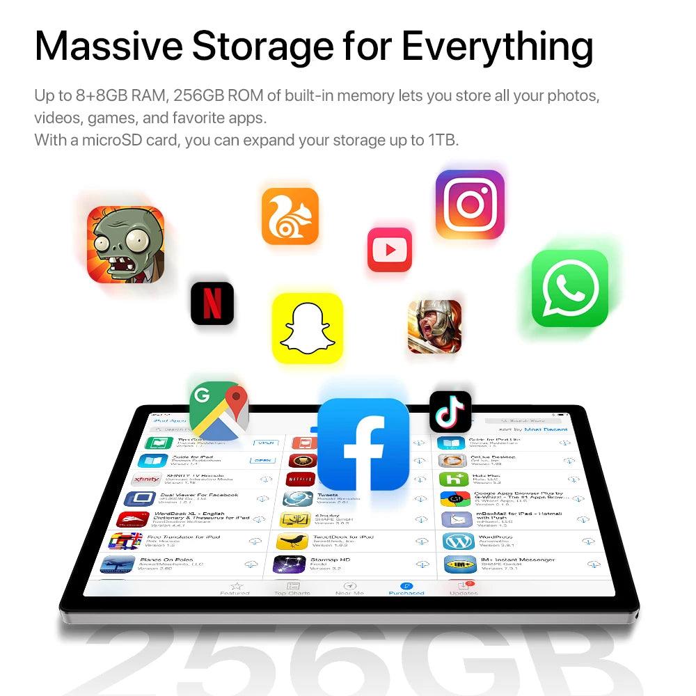 • Massive 256GB Storage: Store all your apps, files, and media without compromise.