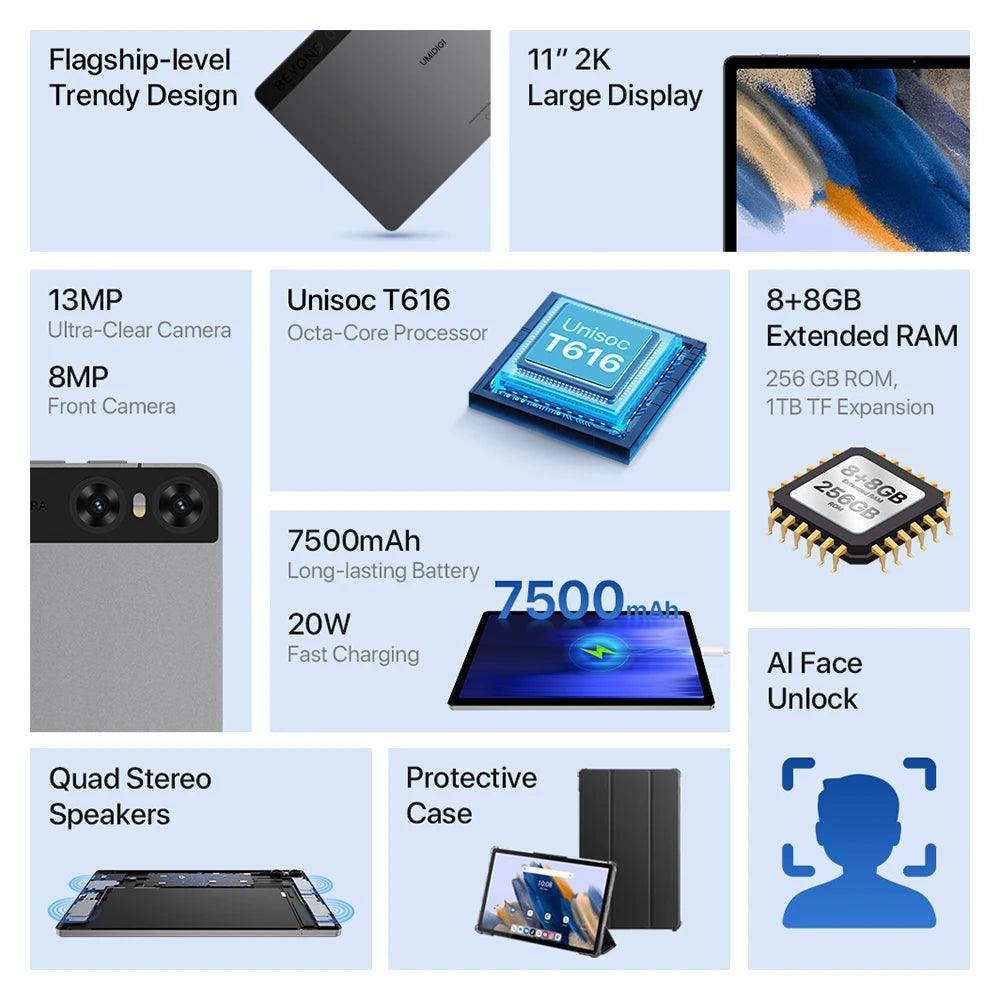 Whether you're tackling work projects or diving into creative ventures, the UMIDIGI A15 Tab 11 Inch 2K HD Android Tablet 8GB RAM Device ensures you stay productive with features like: