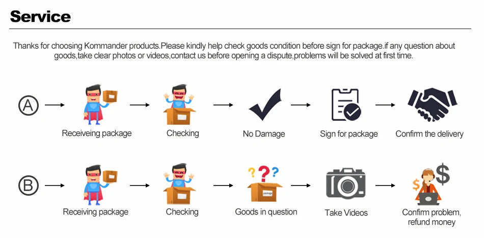 30 days returns. 100% Money back guaranteed no question ask. If the mistake is from Us. See details