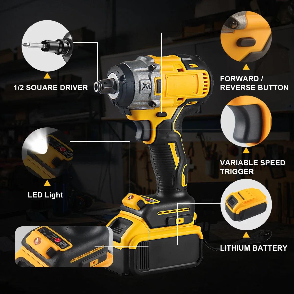 • Exceptional Torque: The impact wrench achieves a maximum torque of 320Nm, making it ideal for heavy-duty applications.