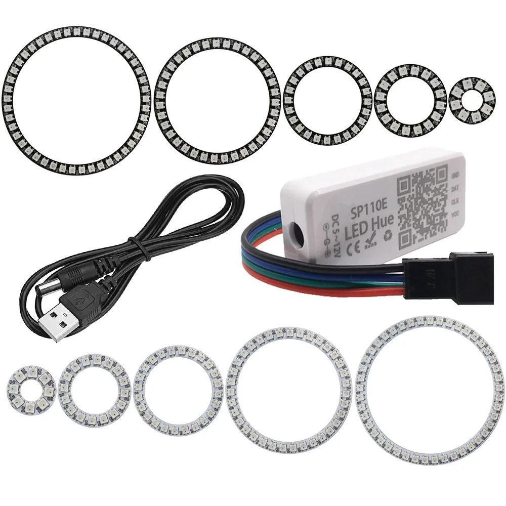 LED Pixel Ring With SP110E Controller USB RGB Kit Lighting unlocks a spectrum of color with USB-powered smart control, Bluetooth 4.0 app access, and 1024-pixel precision. Enjoy 120 patterns, brightness adjustment, wide 5V–12V operation, and versatile one- and two-wire driver compatibility for dynamic ambient lighting in any space.