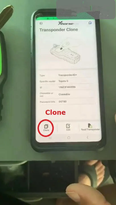 2. Read out the original key information and tap “Clone” (Transponder).