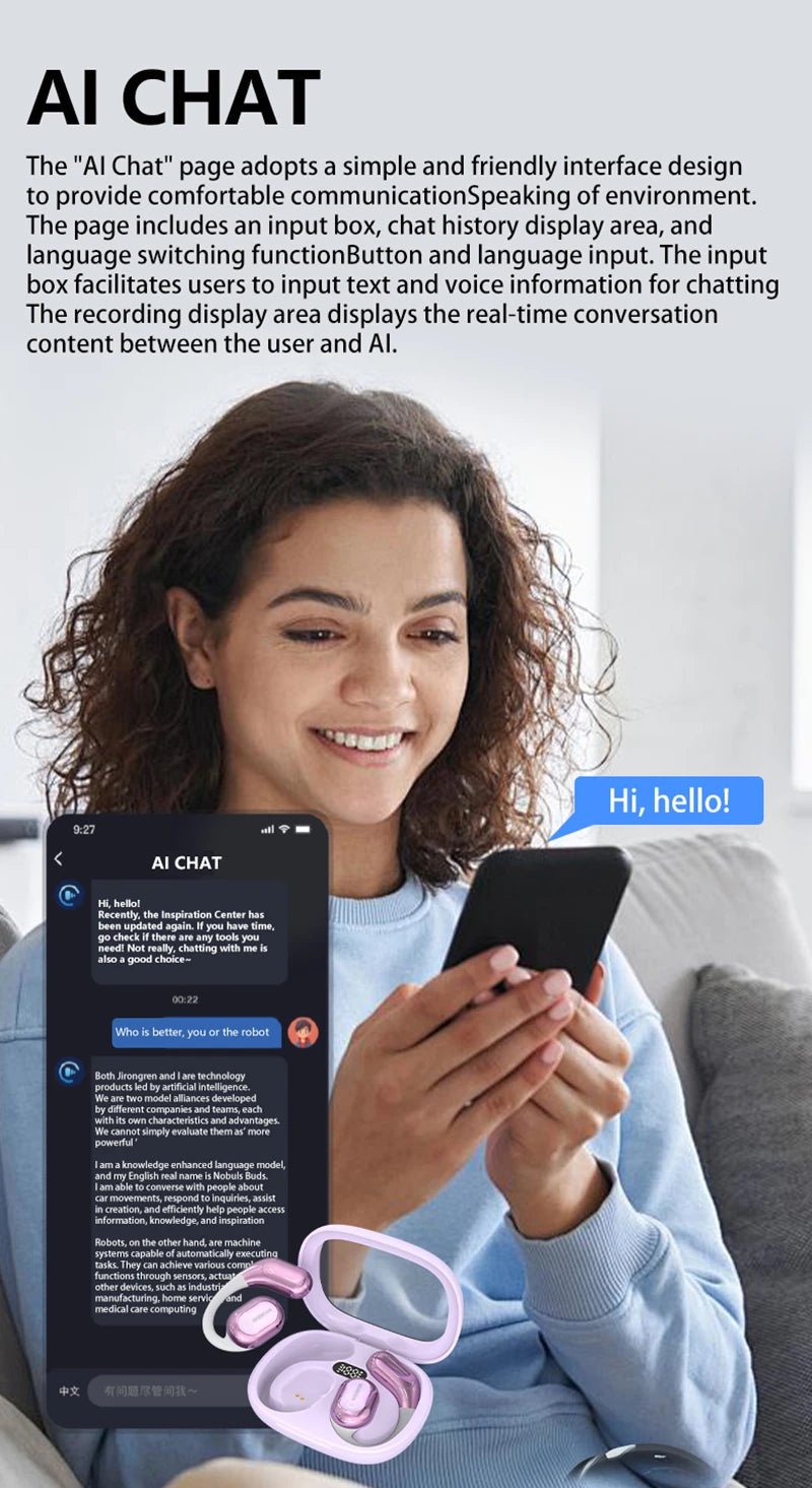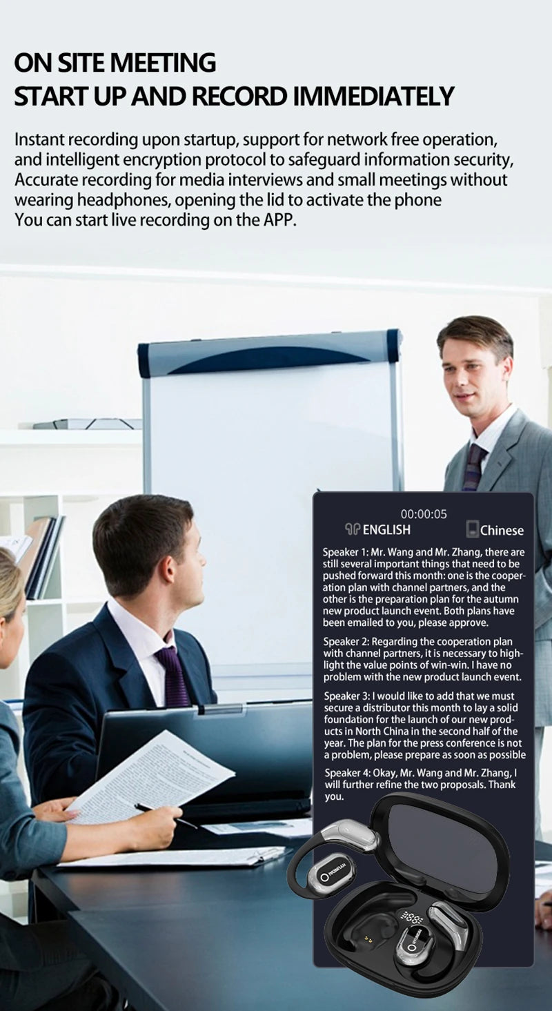 • 2. Instant Bluetooth-Compatible Connectivity: Enjoy high-quality audio with advanced Bluetooth 5.3 technology, ensuring a reliable connection for uninterrupted translation.