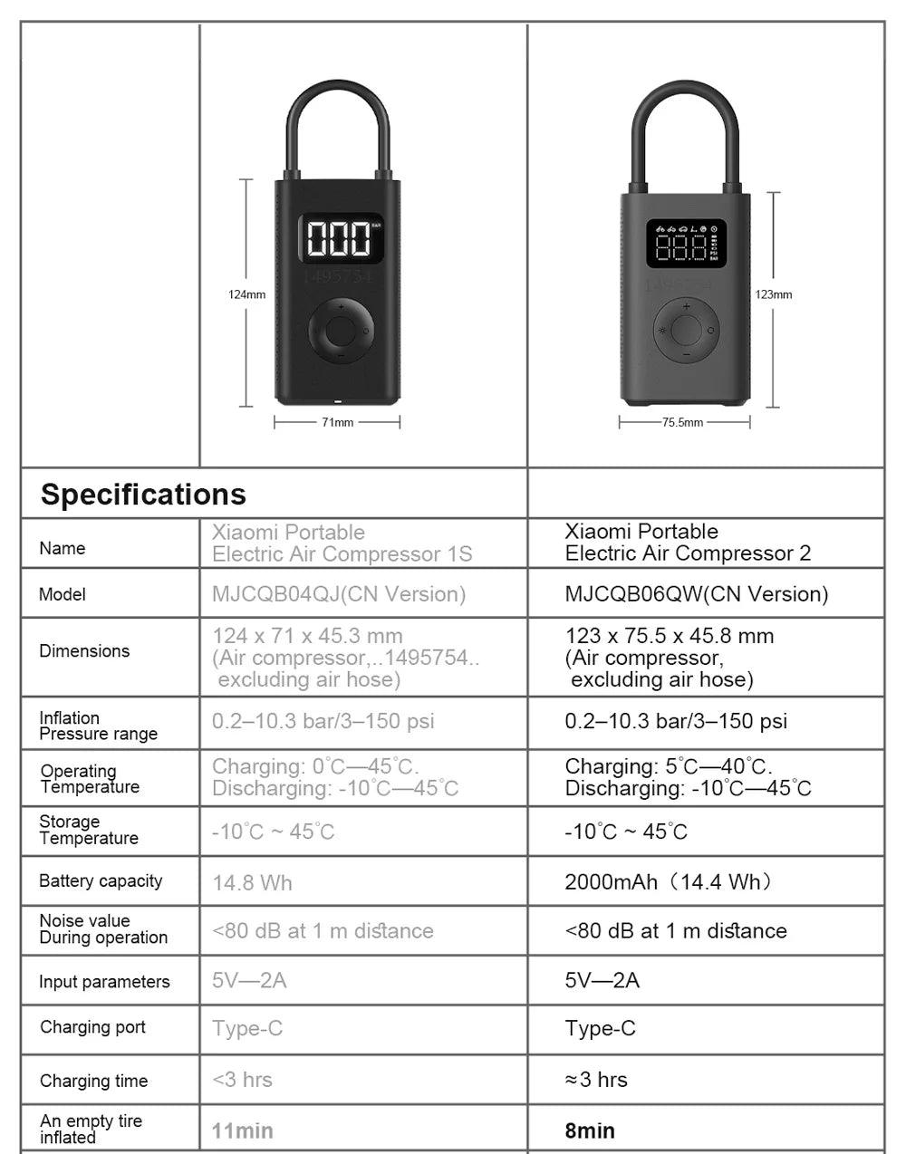 Introducing the Xiaomi Mijia Air Pump 2, the ultimate solution for all your inflation needs! This mini portable electric air compressor is engineered for speed and efficiency, boasting a 25% speed boost compared to its predecessor. With a powerful inflation capability of up to 150 PSI, you can inflate a standard car tire in under 8 minutes, making it an essential tool for any vehicle owner.