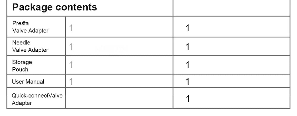 • Quick Connector Conversion Head: Facilitates fast and clean nozzle changes, making it adaptable for various inflation tasks.