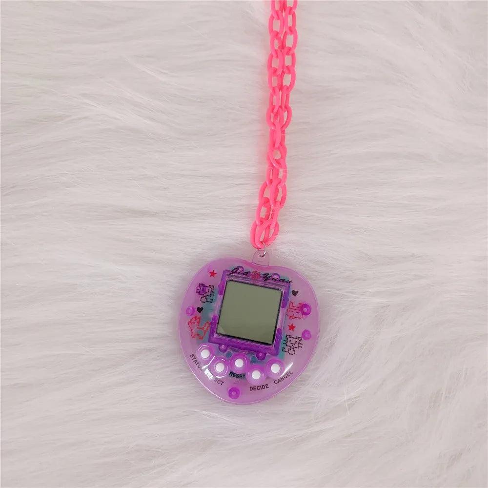 Y2K Electronic Pet Game Pendant Necklace with Rainbow Charms