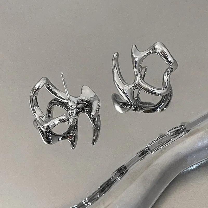 Liquid Silver Geometric Clip Earrings Y2K Punk Accessory