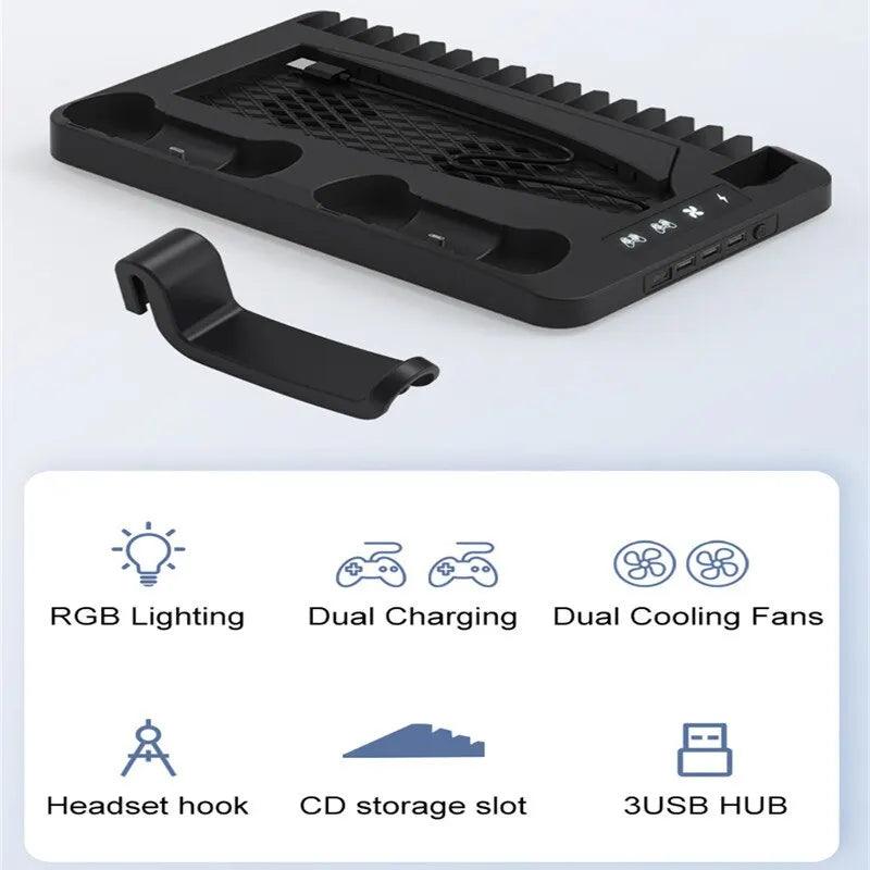 Transform your gaming experience with the YLW P58 P5 Stand Cooling Station With RGB Light Fan Charger. This innovative accessory is designed specifically for PS5 enthusiasts, combining functionality with stunning aesthetics.