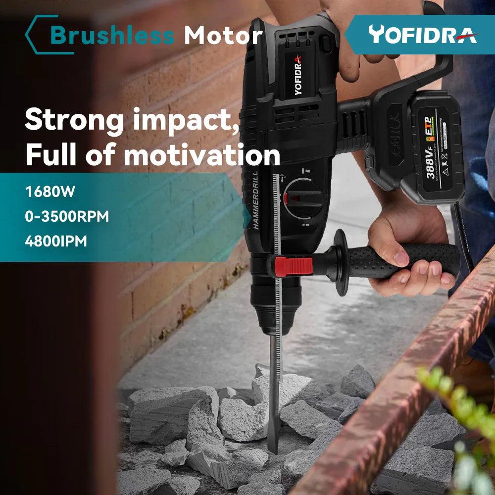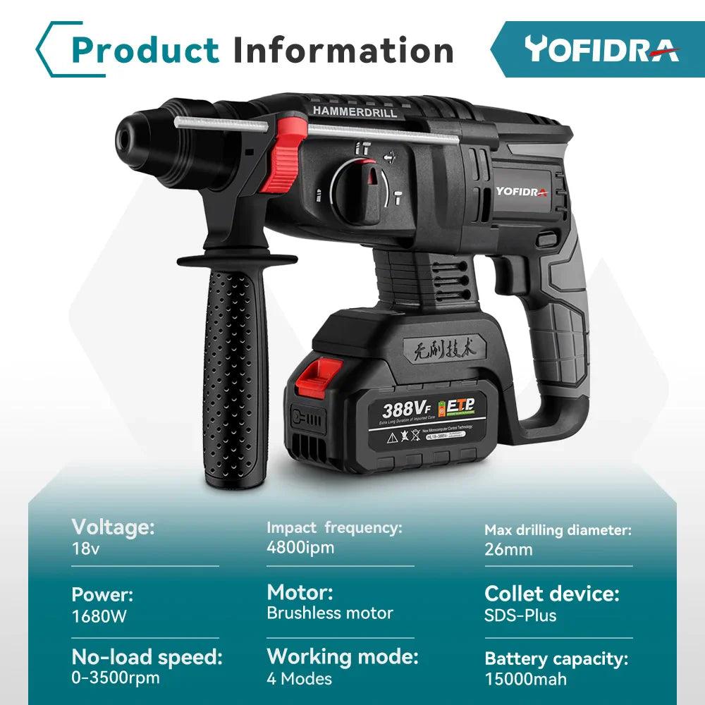 Yofidra 26mm Brushless Electric Hammer Drill Cordless Tool