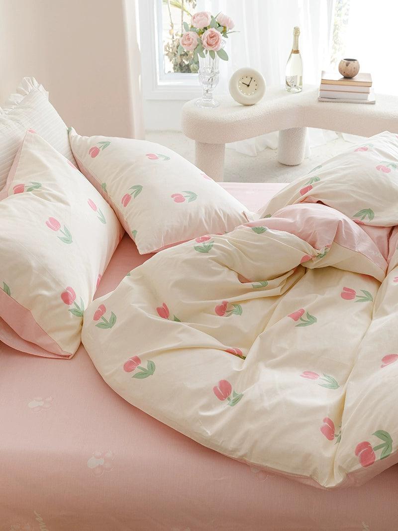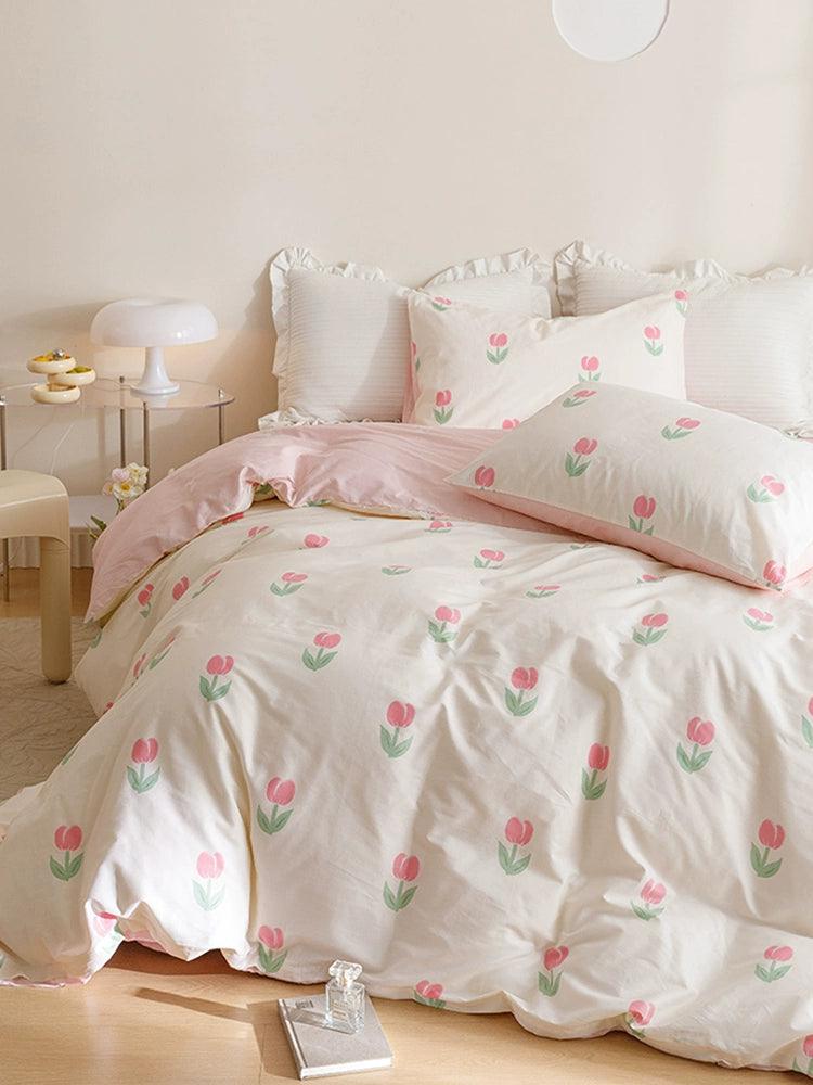 The Young Adult Heart Little Flower Cotton Bed Sheets Set not only enhances the aesthetic appeal of your room but also provides unmatched comfort. Crafted from hypoallergenic cotton, it's gentle on the skin and perfect for anyone.