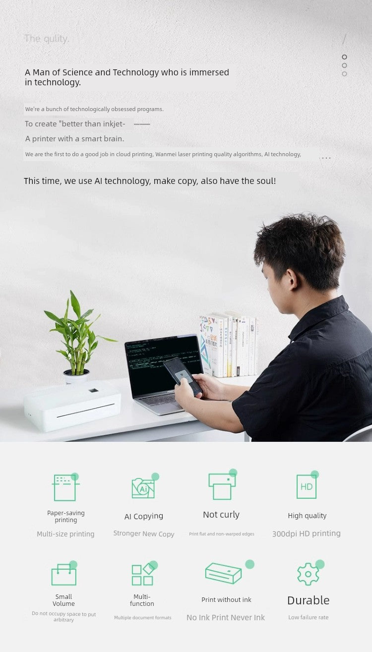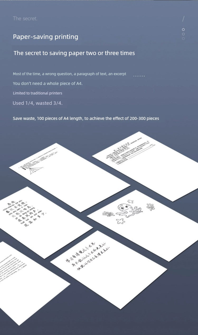 Revolutionize your printing experience with the Zero Ink Cloud Paper-Saving Non-Ink Printer A4 Mini. This innovative printer is specifically designed for students and households, providing a seamless solution for homework, test papers, and everyday printing tasks—all without the hassle of traditional ink.